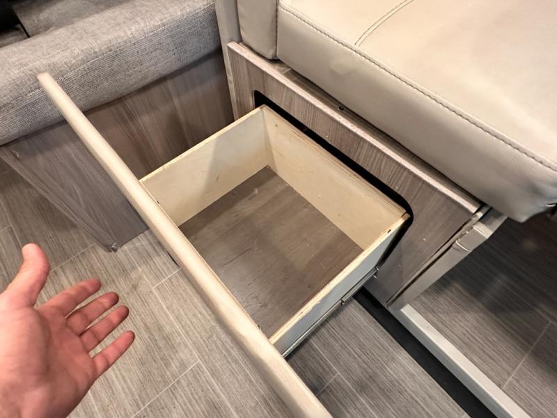 You can tour a local winery or trek up north to find a cozy and secluded camping spot with this Compass AWD Class B+ gas motorhome! All of your needs will be met with the excellent features and amenities included on this coach, like the full bathroom complete with a 24" x 32" shower, three robe hooks, a shower skylight, a foot-flush toilet, and a power bath vent. The kitchen is ready to help you make mobile meals, and the 68" Dream Dinette is the perfect place for eating those meals or playing a game later on. At the dinette table top, you'll find a wireless phone charger with USB plug so that you can charge your phones. There is a privacy curtain that sections off the flip-up RV queen bed, and you'll also find a 32" TV in the bedroom. The second 32" TV is located out in the main living area for everyone else to watch.
