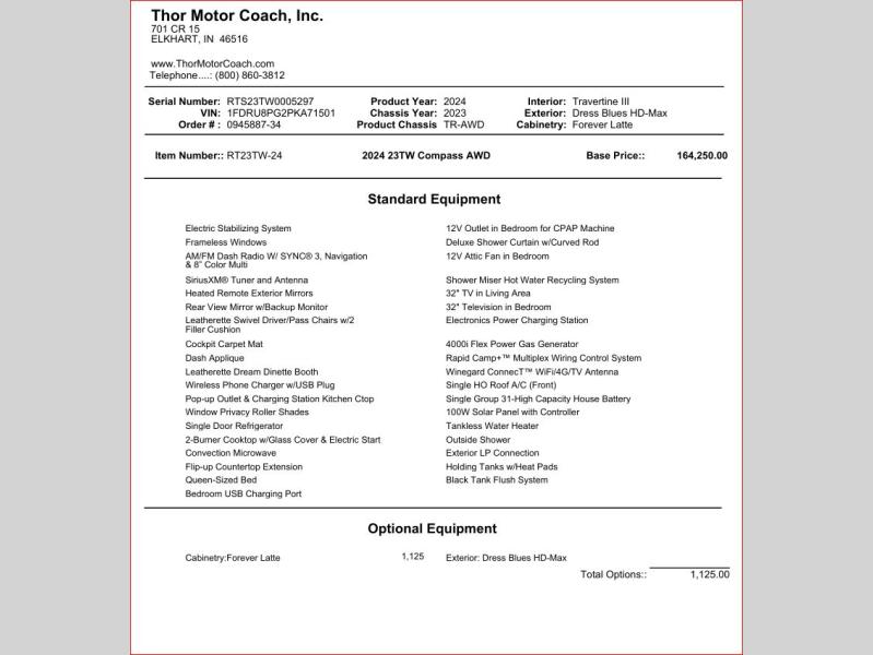 Thor Motor Coach Compass AWD Class B+ gas motorhome 23TW highlights: