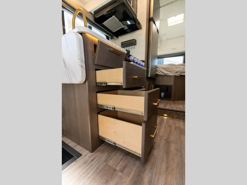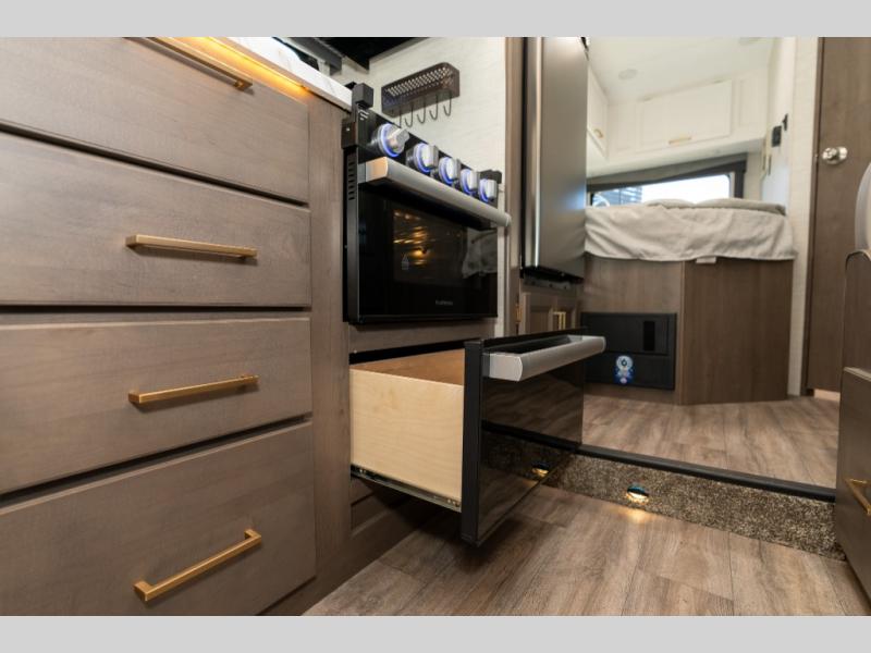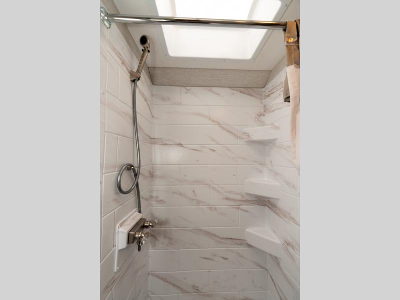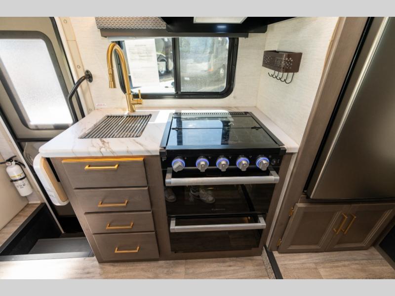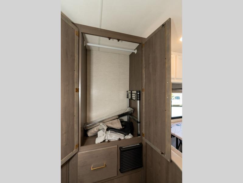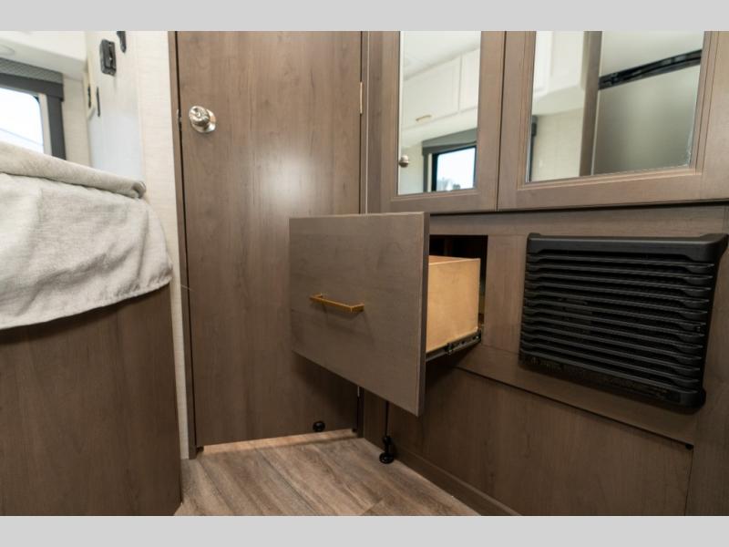 Get ready to travel for long periods of time in this coach that offers sleeping space for five when you utilize the rear corner queen bed, the cab over bunk and the dream dinette. You and your friends will enjoy staying anywhere with the views out of the windows, the full bathroom only a few steps away and the kitchen amenities to feed everyone plus some. The chef will love the galley kitchen and being able to watch the 39" Smart TV with swivel while cooking. You might even like to add an optional exterior 32" TV to enjoy while relaxing outside under the power awning with integrated LED lighting to enjoy at night.