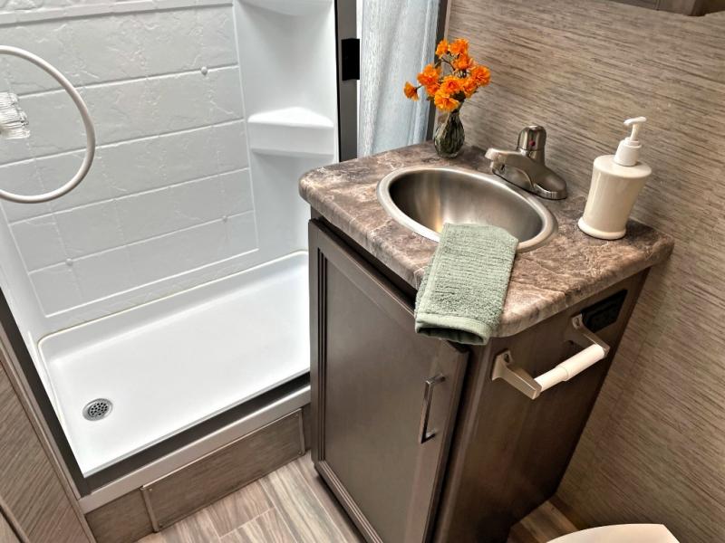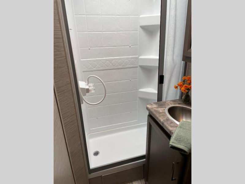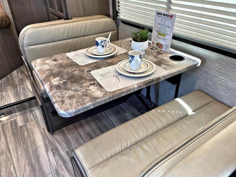 Get ready to travel for long periods of time in this coach that offers sleeping space for five when you utilize the rear corner queen bed, the cab over bunk and the dream dinette. You and your friends will enjoy staying anywhere with the views out of the windows, the full bathroom only a few steps away and the kitchen amenities to feed everyone plus some. The chef will love the galley kitchen and being able to watch the 39" Smart TV with swivel while cooking. You might even like to add an optional exterior 32" TV to enjoy while relaxing outside under the power awning with integrated LED lighting to enjoy at night.