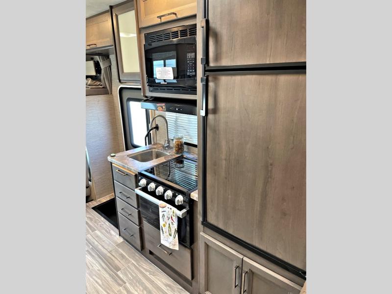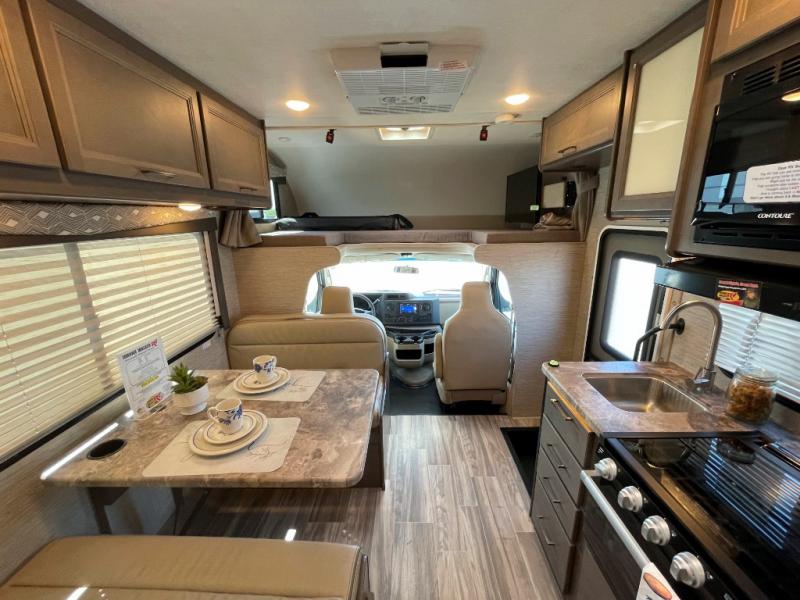 With any Four Winds Class C gas motorhome, you can travel in a trustworthy Ford E-Series chassis with 325HP, or a Chevrolet chassis with 401HP if you choose that option which is available on several models. Each is built with welded sidewall cage construction and a welded tubular aluminum roof, a one-piece fiberglass cap, and includes a slick fiberglass exterior with graphics package for style and years of enjoyment on the open road. Inside, you will enjoy the well-equipped kitchen, the spacious bathroom, the sleeping accommodations and the Winegard ConnecT 2.0 WiFi/4G/TV antenna that allows you to stay connected. With several floorplans to choose from and options to add, you will surely find one that fits your family's needs or your friend's approval. Choose today!