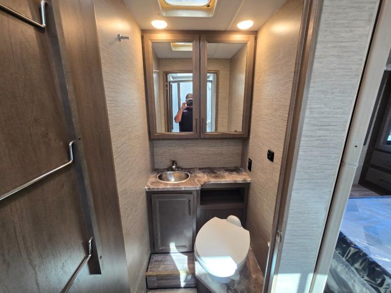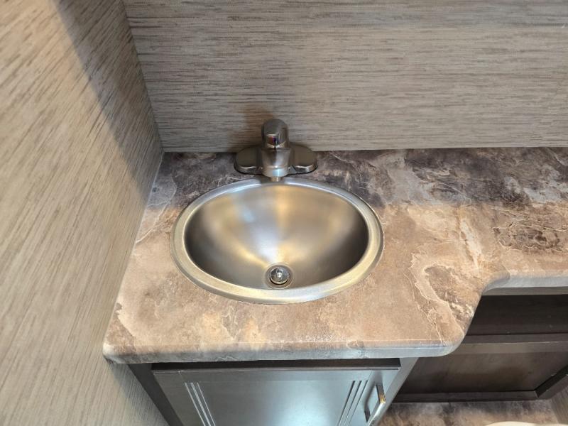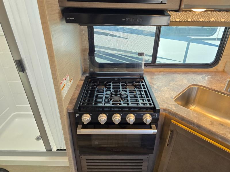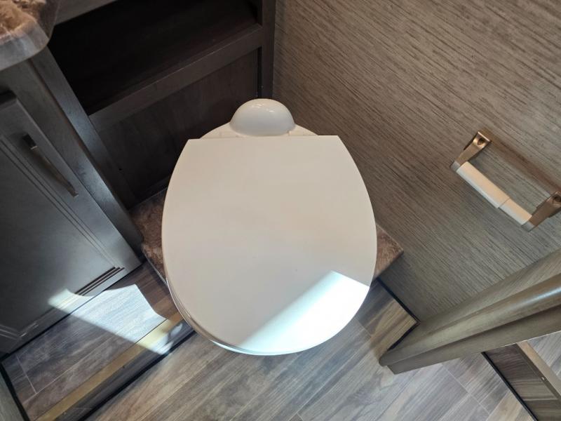 Whether you are couple or a family, this coach offers so many comforts you might never go back home! There is a rear bedroom offering a walk-around queen bed with storage on each side, and a split bathroom allowing two people to get ready at once. You'll love the living room furniture that can double as sleeping space for overnight guests, along with the cab-over bunk. There are full kitchen amenities such as a gas cooktop and microwave, plus the 12V refrigerator is next to the mid-coach entry allowing you to grab a beverage on your way out to relax under the power awning with integrated LED lighting. There is more to enjoy like the 39" Smart TV with swivel for the perfect view of the game, the dream dinette for dining and working, the sofa to relax on, and the cab over bunk to take a nap.