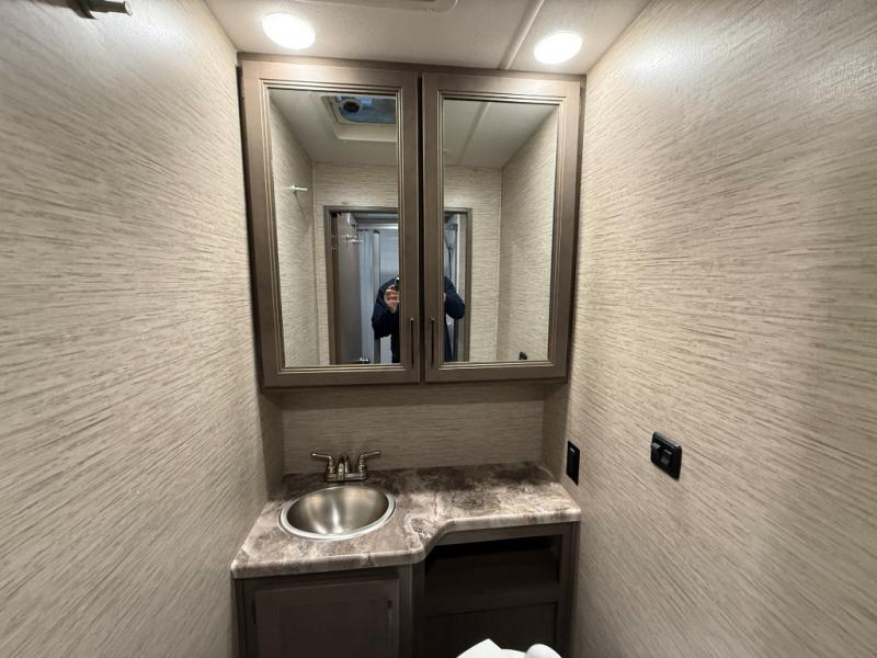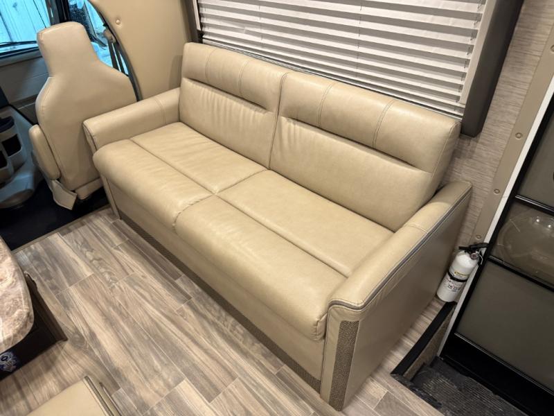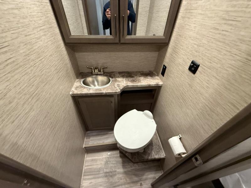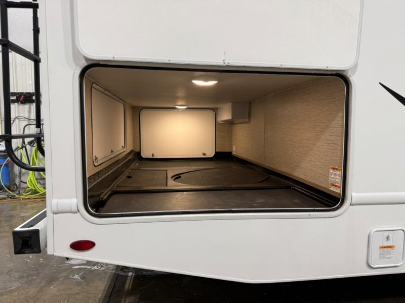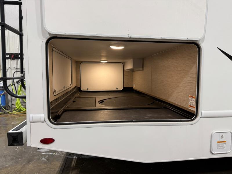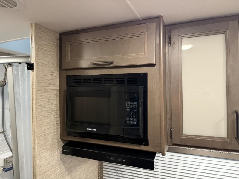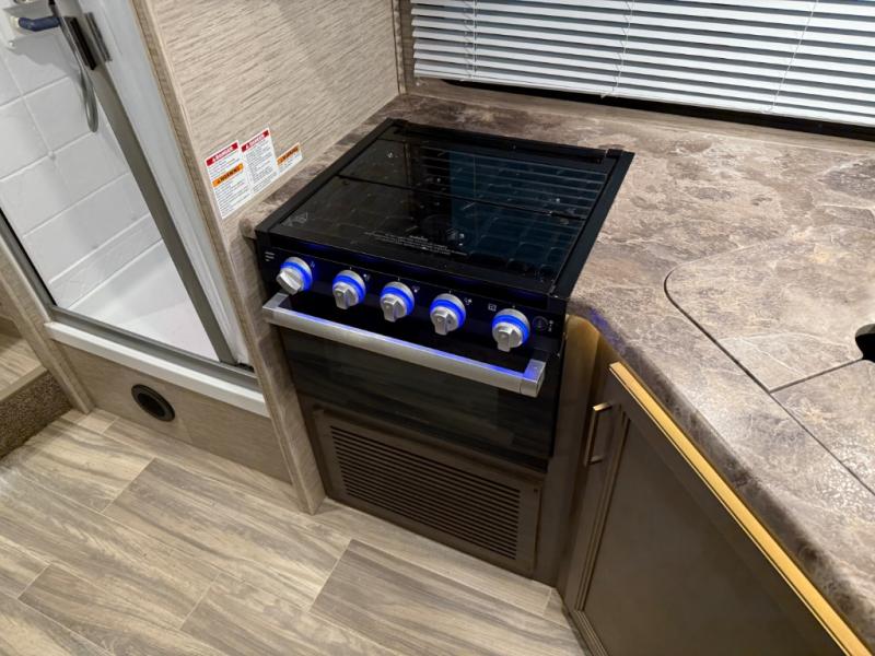 Whether you are couple or a family, this coach offers so many comforts you might never go back home! There is a rear bedroom offering a walk-around queen bed with storage on each side, and a split bathroom allowing two people to get ready at once. You'll love the living room furniture that can double as sleeping space for overnight guests, along with the cab-over bunk. There are full kitchen amenities such as a gas cooktop and microwave, plus the 12V refrigerator is next to the mid-coach entry allowing you to grab a beverage on your way out to relax under the power awning with integrated LED lighting. There is more to enjoy like the 39" Smart TV with swivel for the perfect view of the game, the dream dinette for dining and working, the sofa to relax on, and the cab over bunk to take a nap.