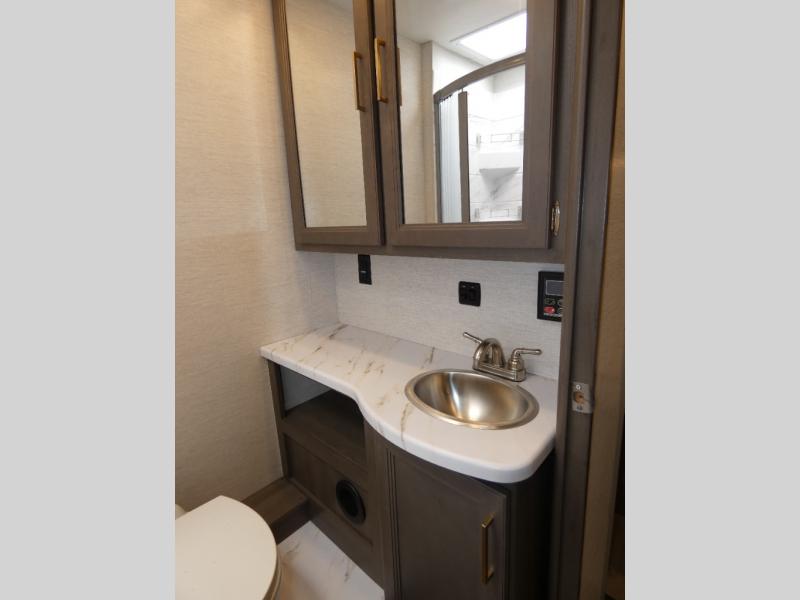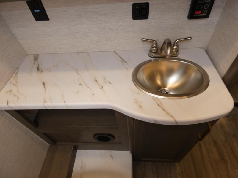 Perfect for a couple or a growing family, this coach will allow you to enjoy inside comforts and outdoor scenery where ever you drive and park! You will have great views out of the many windows when you are indoors, and the power awning offers an outdoor living area protected by the elements when you want some fresh air. The cook will love the large single bowl stainless steel sink with a single handle faucet with a pull-down sprayer when cleaning fruits and veggies, the gas cooktop and microwave when making meals, as well as the 12V refrigerator to hold all the cold items. The slide out creates even more floor space, the furniture offers a place to dine and visit as well as sleep, and the private bedroom with a full bathroom just steps away will complete the deal!