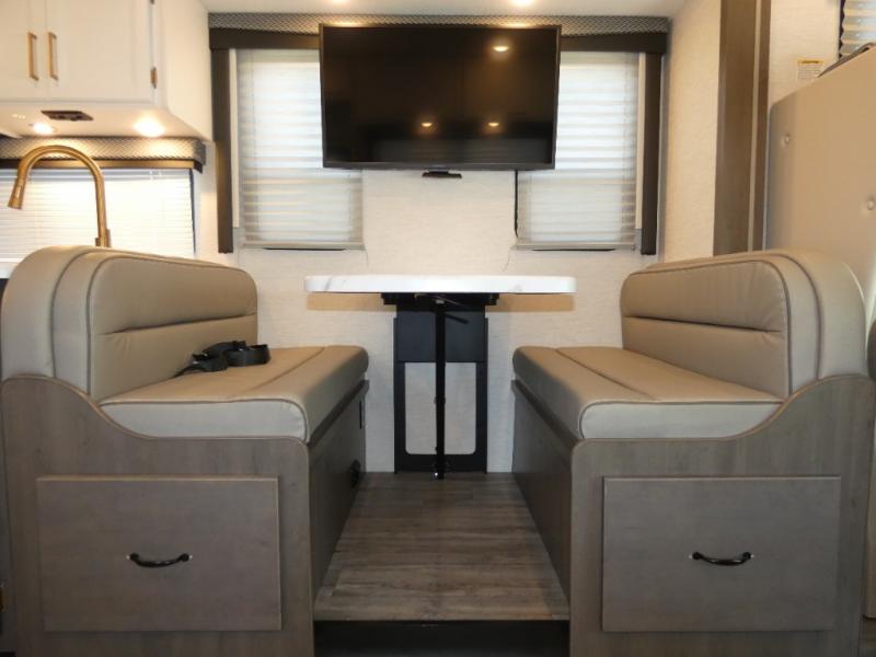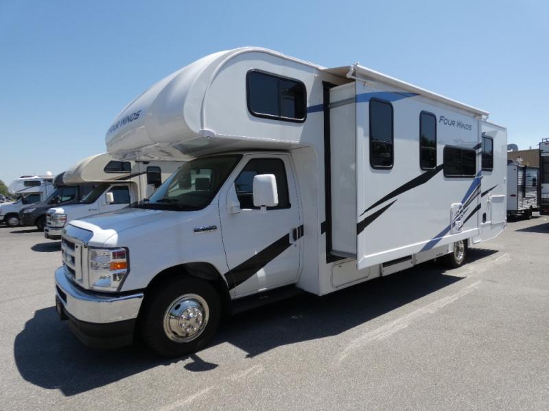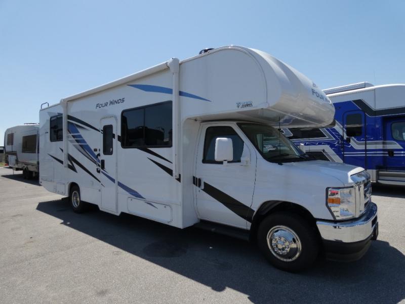 With any Four Winds Class C gas motorhome, you can travel in a trustworthy Ford E-Series chassis with 325HP. Each is built with welded sidewall cage construction and a welded tubular aluminum roof, a one-piece fiberglass cap, and includes a slick fiberglass exterior with graphics package for style and years of enjoyment on the open road. Inside, you will enjoy the well-equipped kitchen, the spacious bathroom, the sleeping accommodations and the Winegard ConnecT 2.0 WiFi/4G/TV antenna that allows you to stay connected. With several floorplans to choose from, you will surely find one that fits your family's needs or your friend's approval. Choose today!