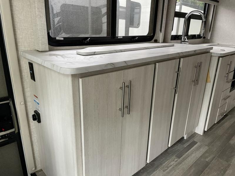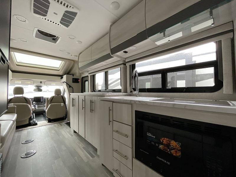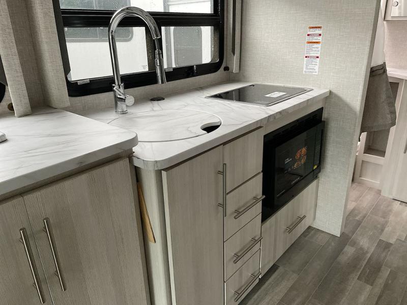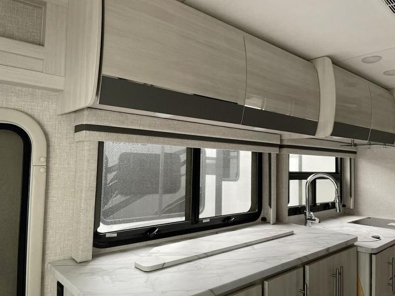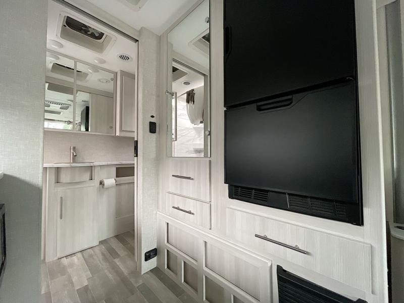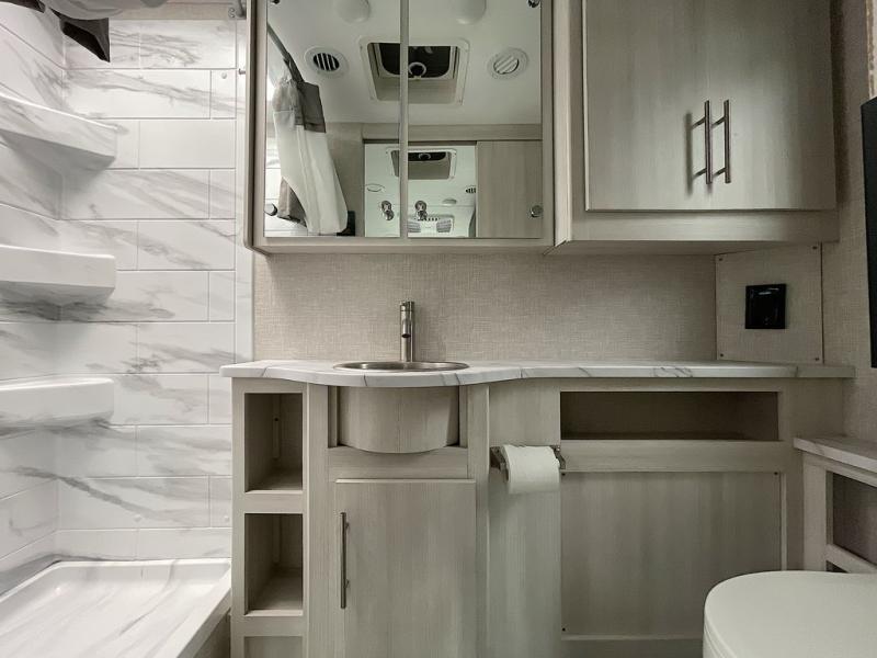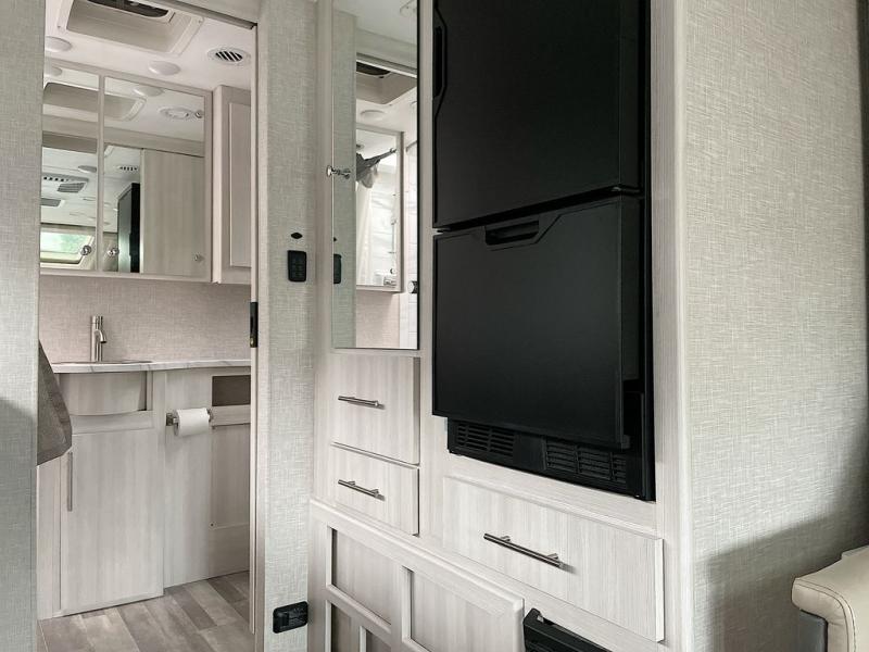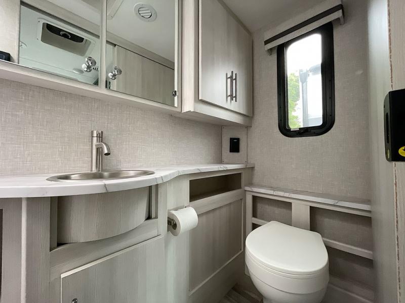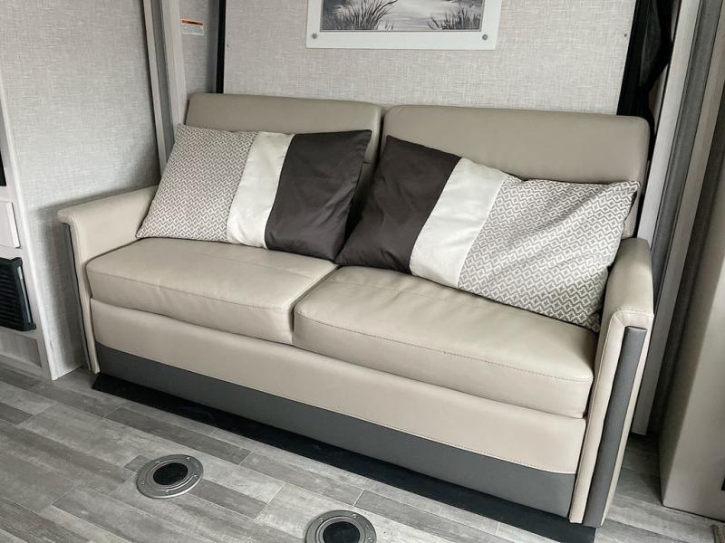 Pack your bags and fuel up this motorhome for a great vacation getaway! Enjoy a good night's rest each night on the 60" x 74" Murphy bed slide and sit on the sofa during the day with a pedestal table to set your drinks. You can prepare your best home cooked meals with the electric start two burner gas cooktop or heat up some leftovers in the convection microwave oven with an air fryer. The front built-in skylight lets in more natural lighting and makes it easier to see the retractable 39" TV. Freshen up each day in the full rear bathroom with a 24" x 36" shower and linen closet to keep your towels close by, plus there is a wardrobe just outside the bathroom to keep your clothes looking nice!