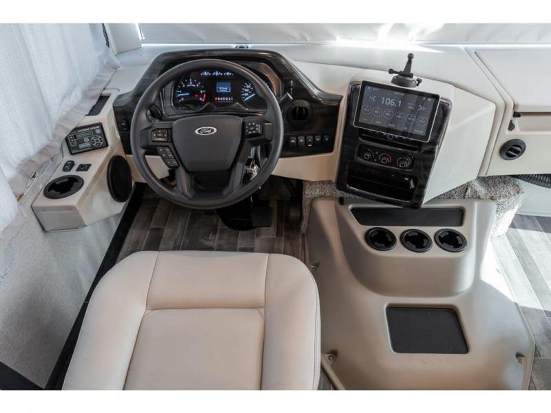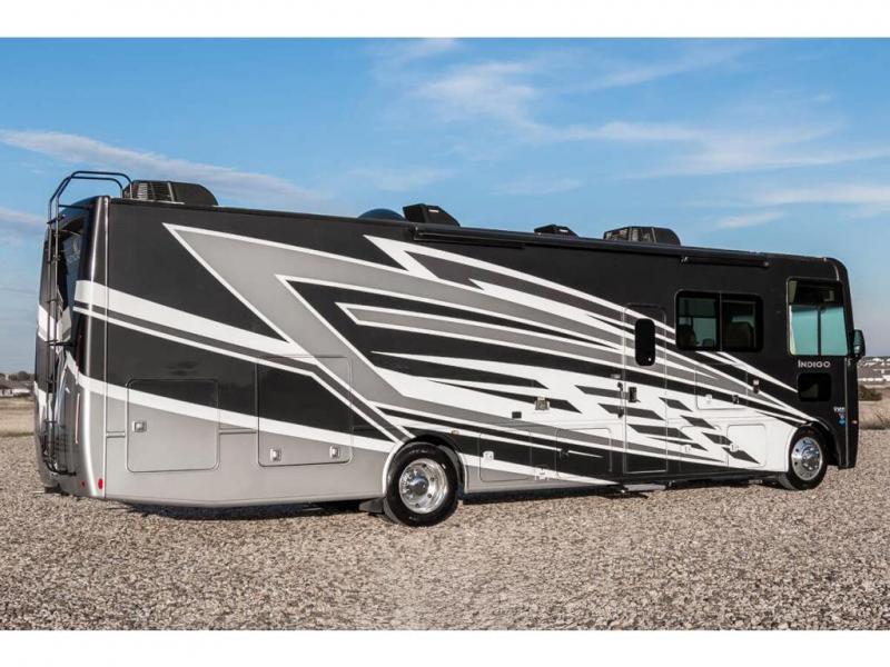 There's something for everyone in the Thor Motor Coach Indigo Class A gas motorhome! Built on the Ford F53 chassis, with family-friendly designs and features that will make your life easier, these are worth considering. Residential vinyl flooring throughout is comfortable and easy to care for, while the seamless countertops make your kitchen look great. Multiple TVs mean there's no fighting over what to watch, and a high-tech driver console adds Bluetooth®, Android Auto™, Apple CarPlay® and Sirius/XM® Radio via a 10-inch touchscreen so you can listen to whatever music you like. The booth dinette has a wireless phone charger with integrated USB plug for charging convenience, or use the dash workstation which has 100-volt and 12-volt outlets.