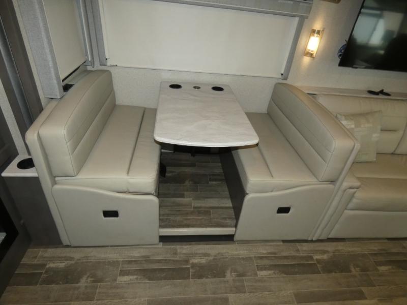 There's something for everyone in the Thor Motor Coach Indigo Class A gas motorhome! Built on the Ford F53 chassis, with family-friendly designs and features that will make your life easier, these are worth considering. Residential vinyl flooring throughout is comfortable and easy to care for, while the seamless countertops make your kitchen look great. Multiple TVs mean there's no fighting over what to watch, and a high-tech driver console adds Bluetooth®, Android Auto™, Apple CarPlay® and Sirius/XM® Radio via a 10-inch touchscreen so you can listen to whatever music you like. The booth dinette has a wireless phone charger with integrated USB plug for charging convenience, or use the dash workstation which has 100-volt and 12-volt outlets.