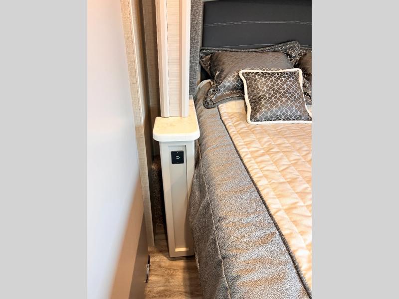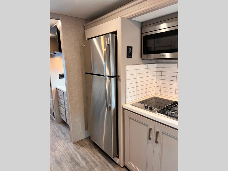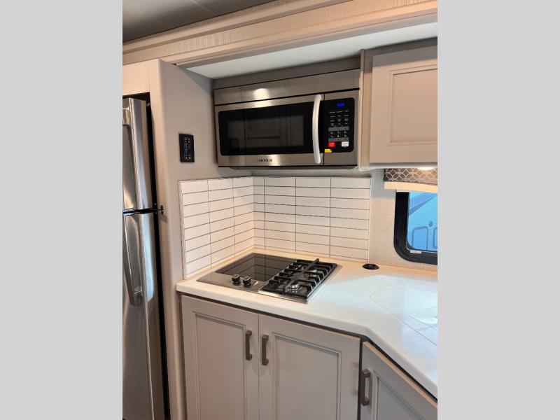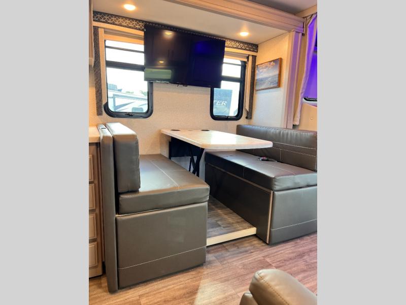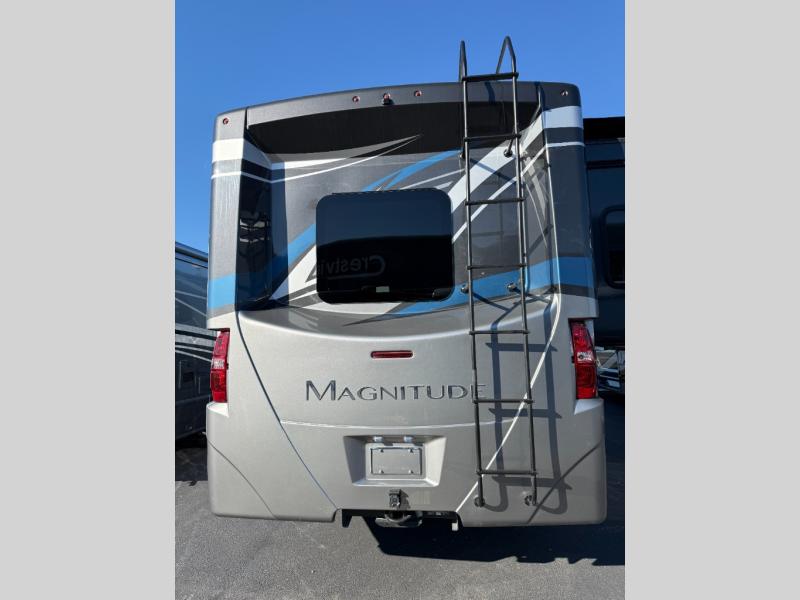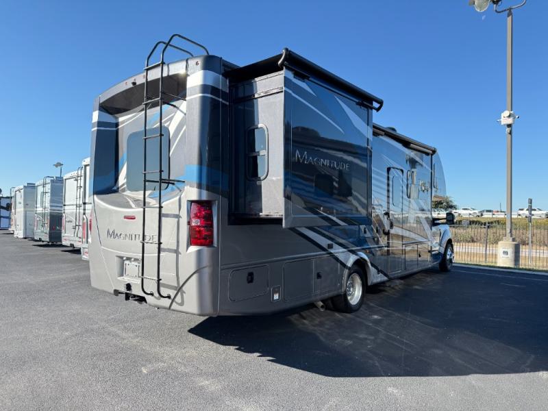Start planning your trip across the states in this Magnitude Super C diesel motorhome that can comfortably sleep six people each night! This coach has four-wheel drive to take you anywhere you want to go. Some of your guests will love the 52" x 80" bunk above the cab, and you will appreciate having your own private bedroom with a 32" TV and an RV queen bed slide. Once you've reached your destination and set up camp, you can easily get cleaned up in the full bath, and then head to the kitchen to prepare lunch on the two-burner gas range with single induction cooktop or in the convection microwave oven. After a long day of traveling, relax on the theater seating and watch a movie on the 39" LED TV.