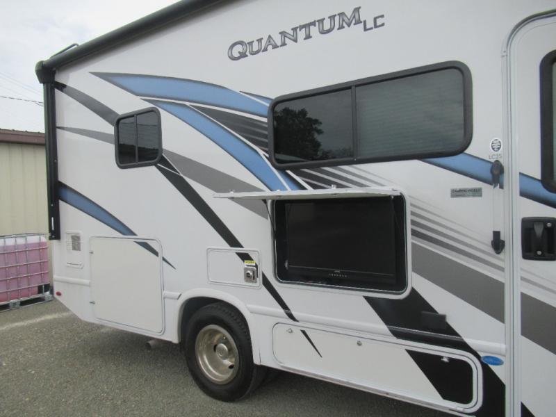 Each Quantum LC Class C gas motorhome by Thor Motor Coach features welded tubular aluminum roof and sidewall cage construction for durability, plus a fiberglass front cap with a skylight and power shade to let natural light in. There are also black framed windows, lighted rotocast storage compartments, plus a sterling exterior with a graphics package you are sure love. The interior is designed to make you feel at home with residential vinyl flooring, pressed laminate countertops, and flat panel cabinet doors. All of your power needs will be met with a 4.0 kW gas generator on board, plus a second auxiliary house battery, and solar prep that includes a solar controller if you choose that option. Don't let another day go by, choose a Quantum LC and start adventuring today!