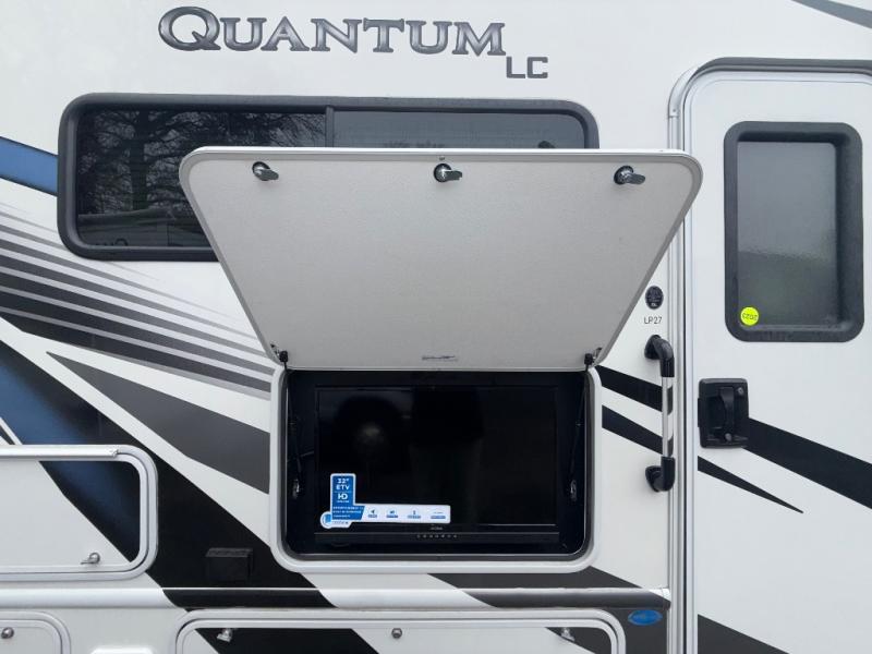 Each Quantum LC Class C gas motorhome by Thor Motor Coach features welded tubular aluminum roof and sidewall cage construction for durability, plus a fiberglass front cap with a skylight and power shade to let natural light in. There are also black framed windows, lighted rotocast storage compartments, plus a sterling exterior with a graphics package you are sure love. The interior is designed to make you feel at home with residential vinyl flooring, pressed laminate countertops, and flat panel cabinet doors. All of your power needs will be met with a 4.0 kW gas generator on board, plus a second auxiliary house battery, and solar prep that includes a solar controller if you choose that option. Don't let another day go by, choose a Quantum LC and start adventuring today!