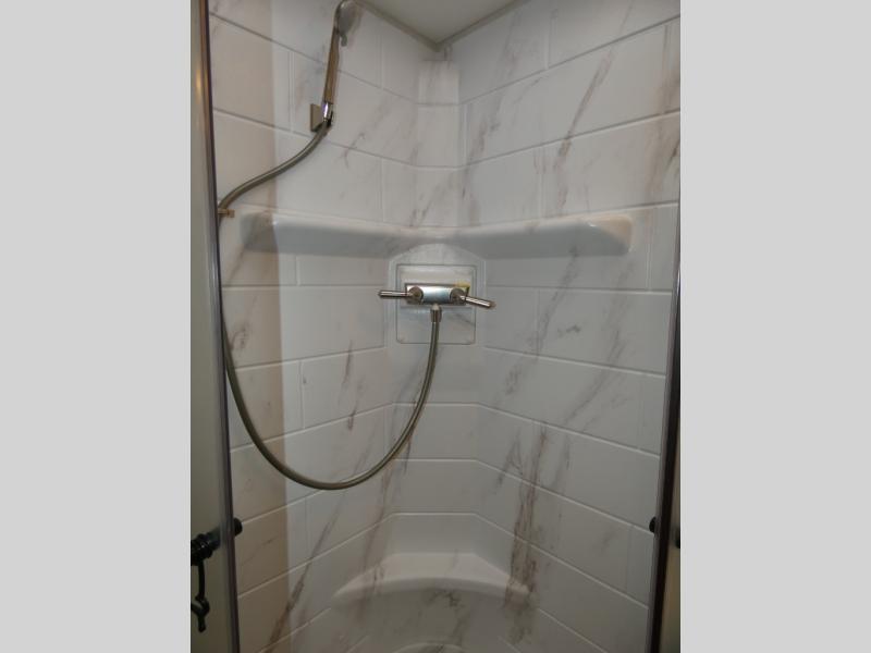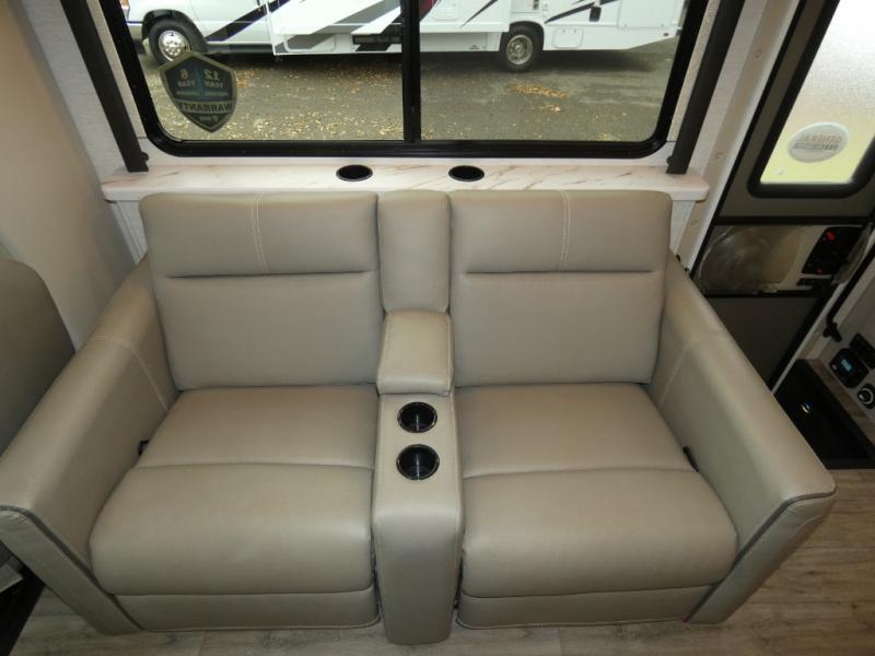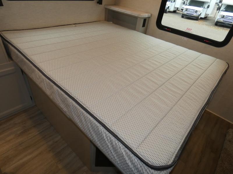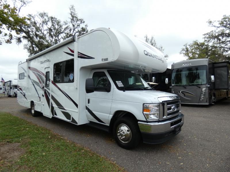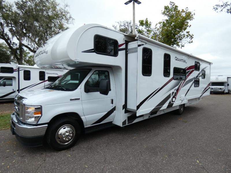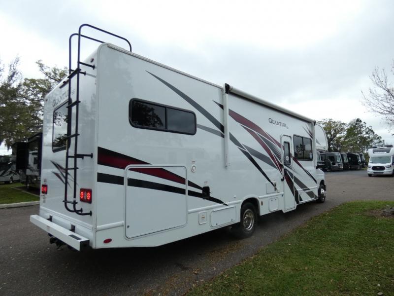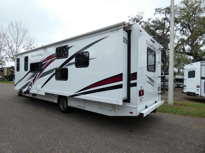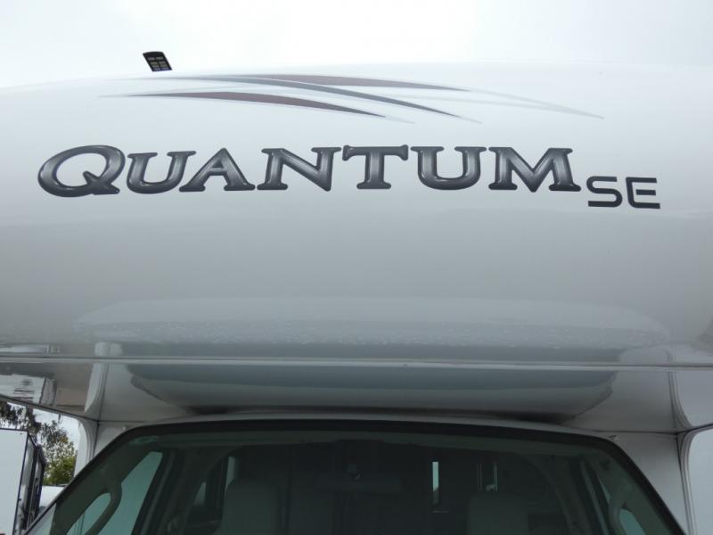 Each Quantum SE is constructed atop a durable Ford E-Series chassis on select models. A one piece fiberglass front cap and slick fiberglass exterior with a graphics package provide a stylish appearance that is easy to maintain for years of family travel, plus there is premium one-piece Crossflex roofing for added durability. You will also love the keyless entry, black framed windows, and solar prep with a solar controller for off-grid capabilities. Each unit provides a power awning with integrated LED lighting, a convenient roof ladder, and lighted rotocast storage compartments so you can easily find what you need even after dark. The on-board 4.0 kw gas generator and 30-amp shoreline power cord will keep your adventures powered up, and the tankless water heater will be a feature you won't want to camp without. Why not make one of these Quantum SE models your new traveling home-on-wheels.