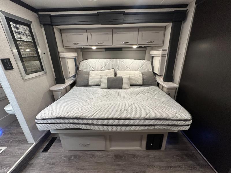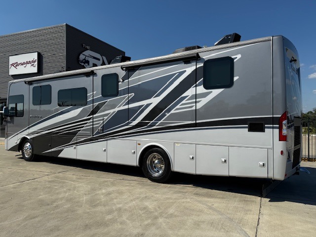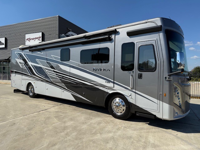 With any Riviera Class A diesel motorhome by Thor Motor Coach, you will enjoy a luxury home on wheels wherever you decide to roam! You will appreciate a capable Freightliner CS-S straight rail chassis with an Atlas foundation and better fuel mileage with the Cummins ISB-XT 6.7L diesel engine. There is a spacious basement pass-through storage for your camp gear, a powered patio awning with LED lighting, and an exterior 40" LED TV for outdoor movie nights. You will be able to enjoy your coach for years to come thanks to the durable construction materials that include a welded tubular steel floor, Vacu-Bond laminated roof, walls, and floor, plus a one-piece domed roof membrane. The elegant interior is designed with luxury vinyl tile flooring, "Studio Collection" cabinetry, solid surface countertops, and designer backsplash in the kitchen. Some of the amenities you'll appreciate on each model include the RapidCamp+ multiplex wiring control system, a tankless water heater, and an Onan RV QD 6000 diesel generator. Enjoy your RV life with a Riviera Class A diesel coach!
