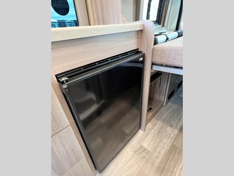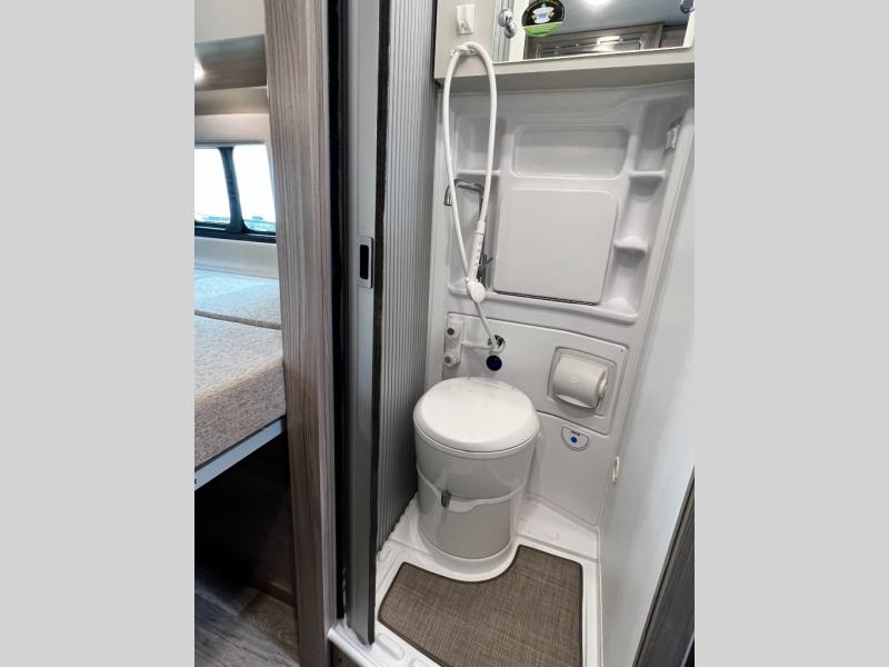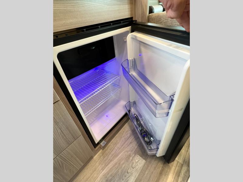 Start traveling the right way with this motorhome! It features a rear 72" x 66" pull out bed with under bed storage for extra blankets or other necessities, plus there are large opening side windows at the head and foot of the bed to let in more natural lighting and fresh air. Freshen up each morning in the manual enclosed wet bath with a cassette toilet and a closet next to it to store your towels. Once you have prepared your best home cooked meal with the single burner induction cooktop, you can head to the collapsible dinette table to enjoy them there comfortably and then watch your favorite movie on the 24" TV!