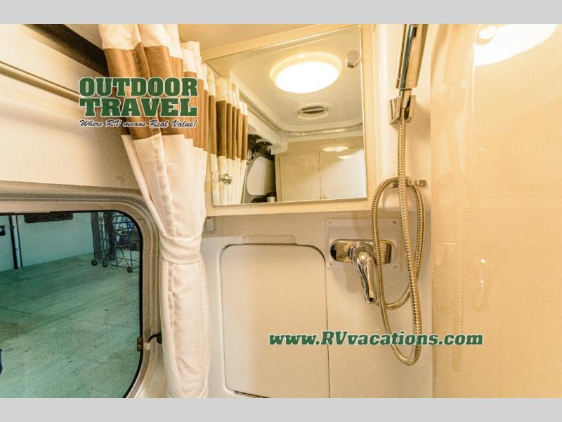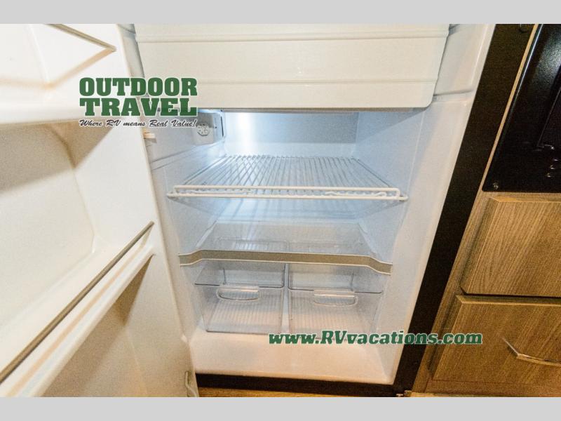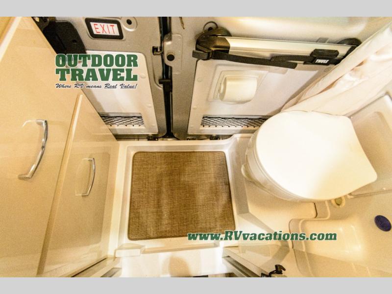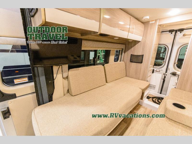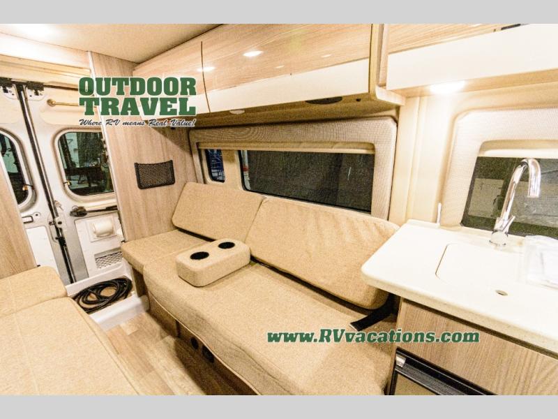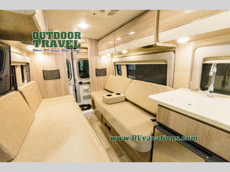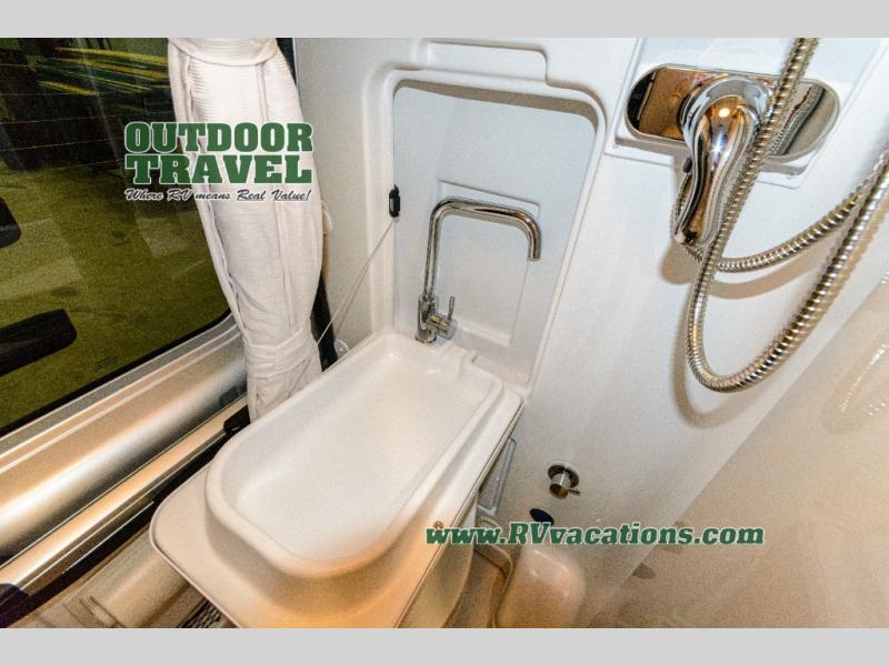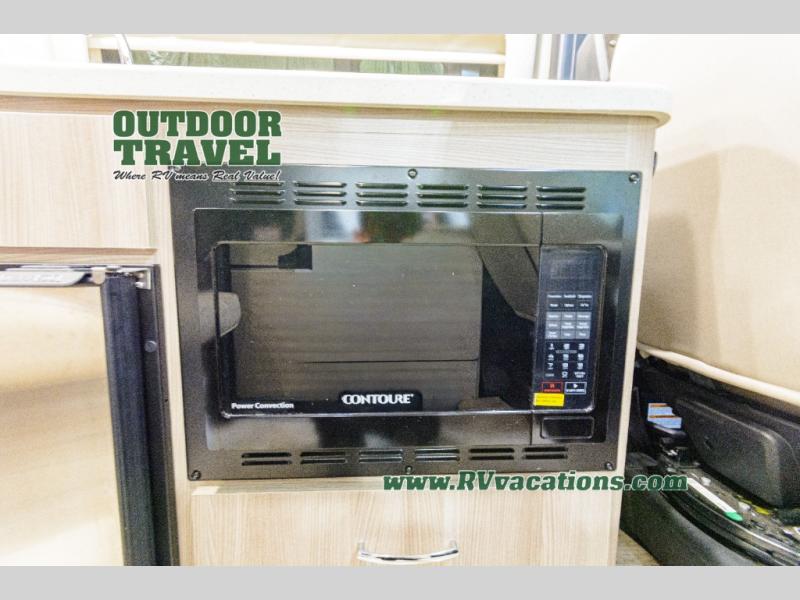 Travel the country with your favorite person in this motorhome! You can freshen up after a long day of traveling in the rear enclosed wet bath with a power vent fan to eliminate unwanted steam and a wardrobe with drawers to store your clothes and towels. Enjoy a good night's rest on the 74" x 80" expanding sleeper sofa once converted with removable tables in between them to eat your meals. The kitchen not only has a single burner induction cooktop, single door stainless 12V refrigerator, and convection microwave, but also a flip-up countertop for more space. There are even large opening side windows to let in some fresh air and natural lighting!