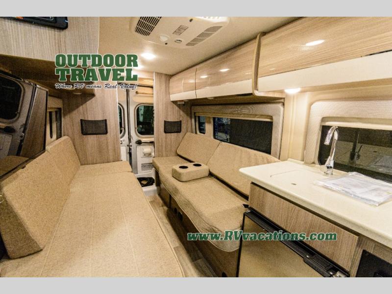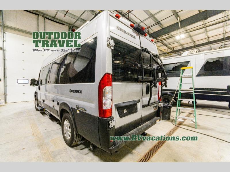 Each one of these Thor Motor Coach Sequence Class B gas motorhomes are built with a RAM Promaster 3500 XT window van chassis and powered by a fuel-efficient V-6 engine for an easy drive, economical explorer van! They are Thule equipped with a roof ladder to view your destination in a different perspective, an optional bike rack for two adult bikes, and a lateral arm patio awning with integrated LED lighting. Modern living and convenience is what you will find throughout the interiors with a premium touchscreen dash radio, Apple Car Play and Android Auto that connects your favorite music and podcasts through USB or Bluetooth, and Euro-style cabinetry. Plus, there is residential vinyl flooring so you can bring your furry friend along and not worry about messes becoming stains!