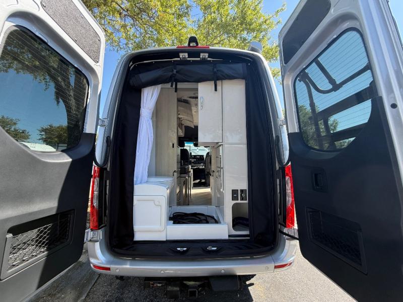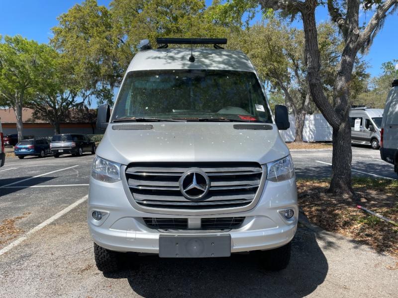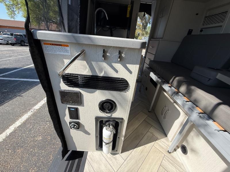 Built for adventure, the Tranquility 19R includes off-grid readiness with solar capability, a power awning for outdoor living, and a 5,000-pound hitch for towing additional gear. The Mercedes safety suite—featuring lane assist, blind spot monitoring, and a backup camera—adds confidence on the road.