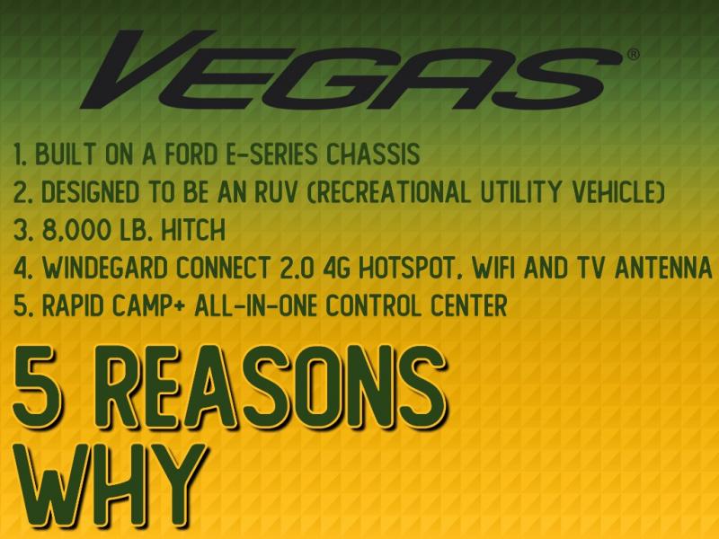 You'll find excellent drivability with the Thor Motor Coach Vegas Class A gas motorhome! These RUVs (Recreational Utility Vehicle) have been built intentionally as a short Class A RV on a Ford E-Series chassis. They allow you to set up camp with ease thanks to the Rapid Camp+ multiplex system which is your all-in-one control center. You won't even have to get up while you're outside relaxing when you want the power patio awning to extend because you can open it with the click of a button on your phone. If you hook up a grill to the exterior LP connection, you'll also have a place to cook while you're outdoors, and the optional 100W solar panel with a controller helps you get away from the crowds. The HD-MAX exterior with graphics package will catch everyone's eye at the campground, and you can bring all sorts of campsite activities in the lighted rotocast storage compartments.
