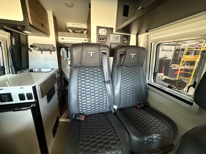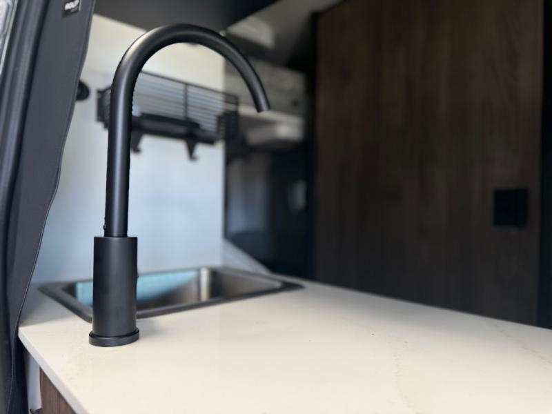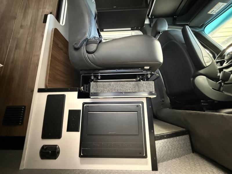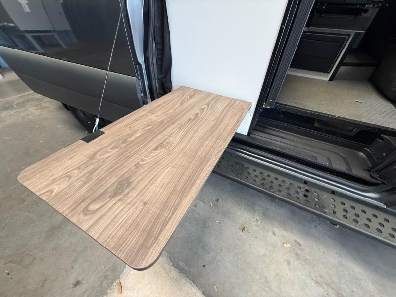 Pick a place, any place, and start packing. This off-road capable diesel van features a 49" x 79" gear garage beneath the power lift bed where you can store all of your gear. Camp chairs, paddle boards for the lake, outdoor games and plenty of hiking gear so you can go from one adventure to another and have everything you need at your fingertips. The on-board wetbath will keep you fresh and clean, and you can easily whip up meals and snacks on the road in the kitchen with a single-burner induction cooktop and refrigerator beneath the counter for your perishables. There is also a sink for cleaning up and a removable counter extension. A bench seat and removable wall mounted swivel table behind the driver's seat can accommodate you for meals or a game of cards. Both front driver and passenger seats swivel to the back so you'll have plenty of seating even with company. At night, the power lift bed will allow you to get a great night's rest so you can enjoy it all again the next day!