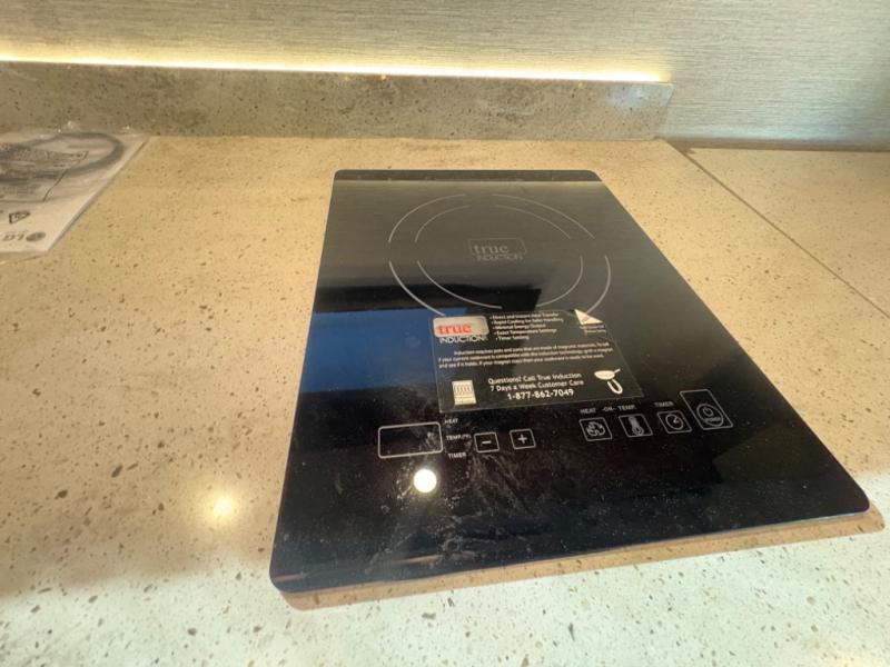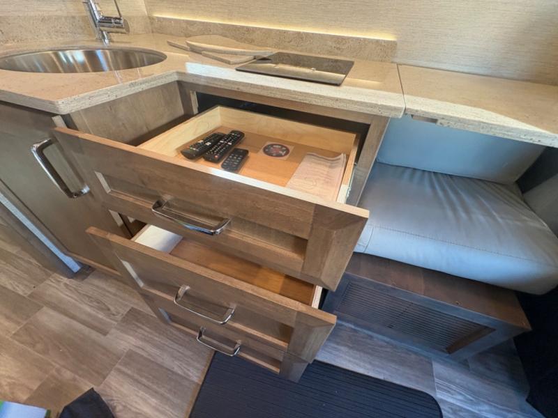 Smart Kitchen Setup – A fully equipped kitchen with a convection microwave, two-burner cooktop, refrigerator, and ample storage lets you prepare meals with ease, no matter where your travels take you.