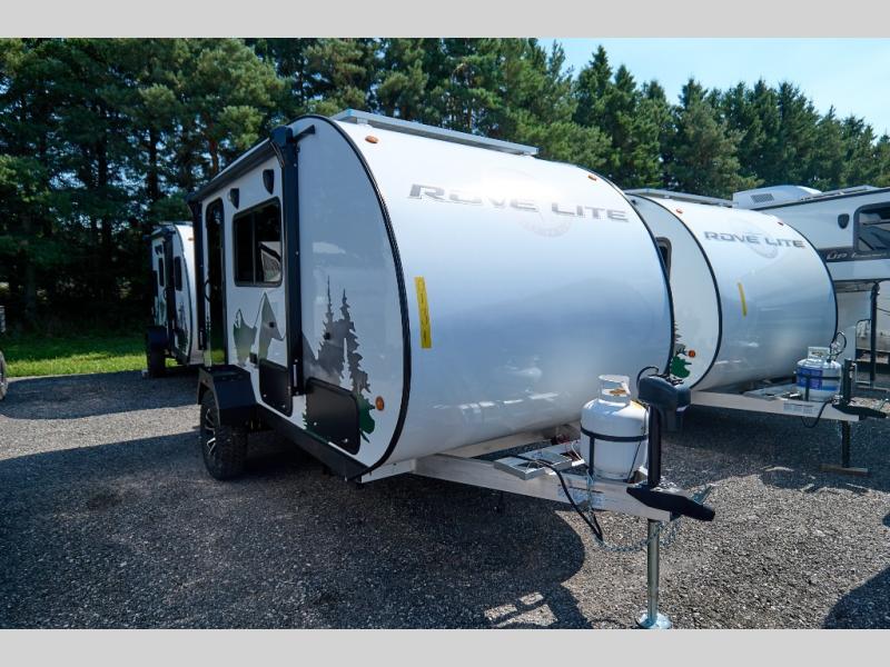 Each one of these Travel Lite Rove Lite travel trailers are crafted with an aerodynamic teardrop design with revolutionary Hyrdo-Lite material making them easy to tow with nearly every mid-size sedan vehicle! The Hydro-Lite construction makes them impervious to water with no wood substrate, moisture blocking gel coat fiberglass, Azdel and honeycomb composite, plus the sidewalls have two-pound fire-retardant block foam insulation that is impervious to heat. The on-demand tankless water heater provides quick hot water so you don't have to wait long for a nice, hot shower. You also have convenient features like a monitor panel, a battery disconnect switch, and 200-watt solar panels for going off grid. Come find your perfect model today!