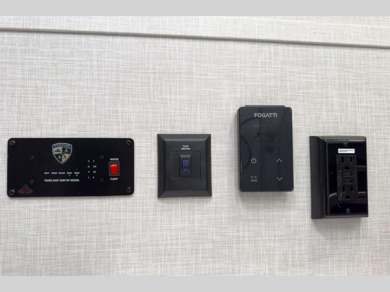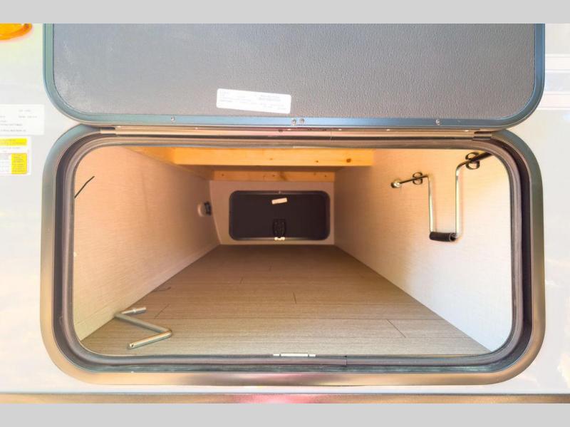 A cook will love this trailer with the choice to make meals inside with full amenities including an 8 cu. ft. refrigerator and a pantry, or outside while using the campfire cafe which offers a griddle and refrigerator, plus counter space to prepare and serve meals. There is sleeping space for four when you utilize the U-shaped dinette slide out that also provides more interior floor space along with the versatile Murphy bed and sofa up front. You will also find a privacy curtain that will section off this area that also features StorMore bedside nightstands with a 110V outlet and USB charging, and two wardrobes.