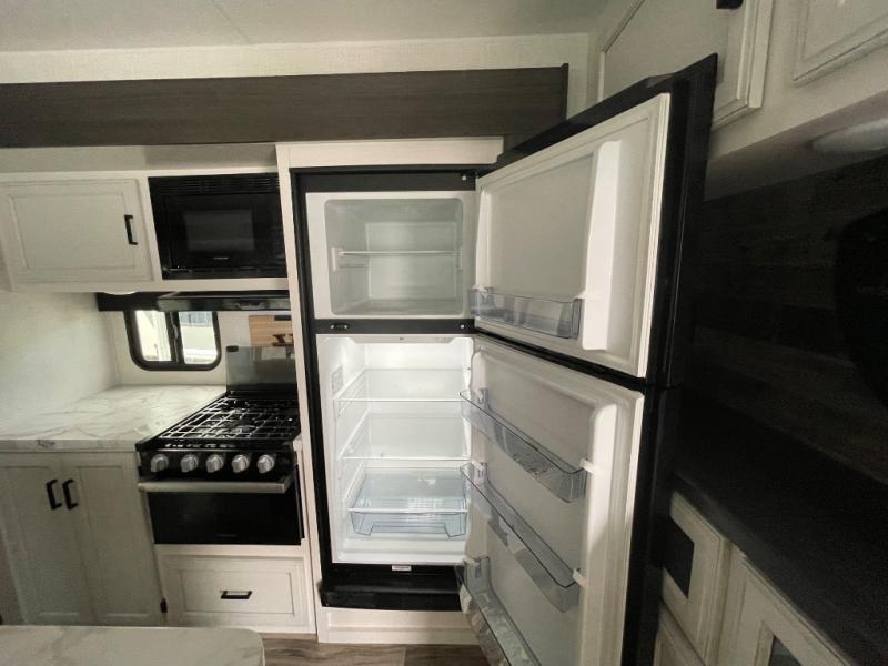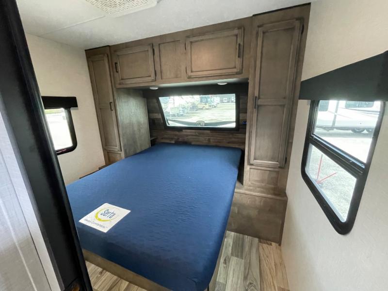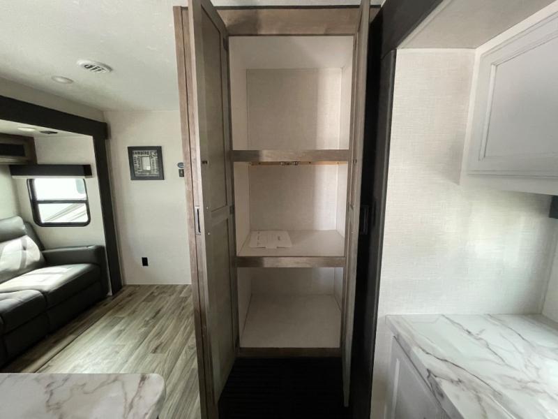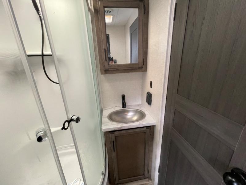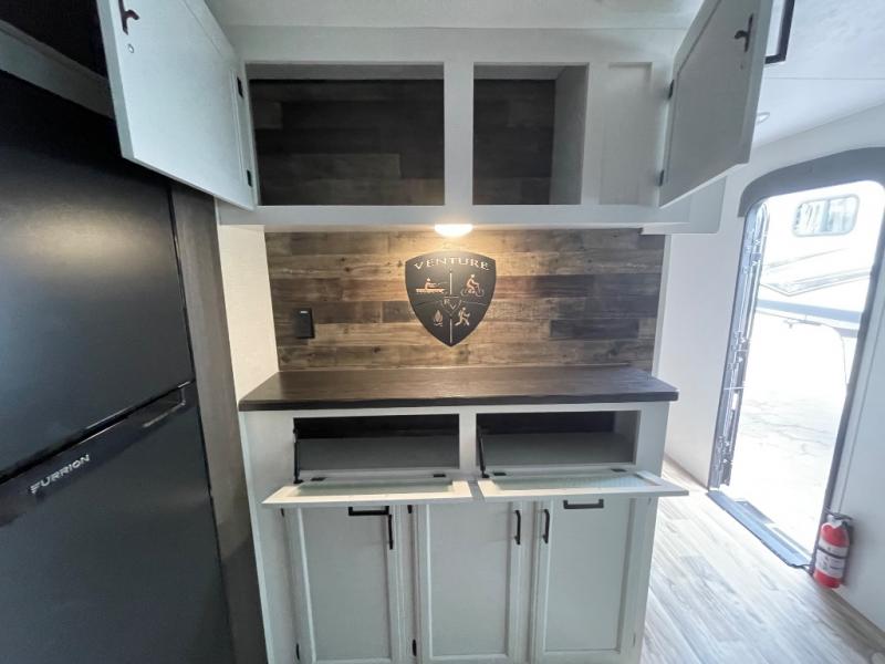 Every Venture RV SportTrek lightweight travel trailer is constructed to offer peace of mind and the comforts of home! Their purposeful residential kitchens are packed with handy features like a Furrion oven and three burner cooktop, a large stainless steel sink with a cover and dish drying rack, plus a 12V refrigerator. You will find plenty of storage throughout, including Safe-Tek hidden storage with a charging center and StorMore nightstands on either side of the bed behind the full-length closets. And the magnetic slam-latch baggage doors and spacious pass-through storage area will hold your outdoor gear in place. They even come with a hot and cold exterior shower and SporTrek's Weather Shield which includes a forced air heated and enclosed underbelly, high output A/C ducting, and more features that will let you extend your camping season. You will also love the new residential upgraded furniture, Serta memory foam mattress, barn style passage doors, and many more comforts!