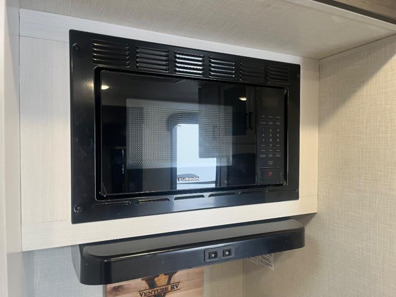 An elegant design and new features come with every one of these Venture RV SportTrek Touring Edition travel trailers! The NXG Huck bolt frame holds these units together and a walkable roof covers them. Heads will turn down the highway and at the campsite with an upgraded graphics package and a painted fiberglass front cap with integrated LED light. The exterior pass-through storage area has slam latch baggage doors with magnetic catches so you don't have to worry about them closing on you and a motion activated light to see your items clearly even at night. Luxury abounds throughout these units, especially with the mandatory Interior Luxury package which comes solid surface kitchen countertops, designer valances with fabric nightshades, two 30" frameless fireplaces, and Beauflor wood plank flooring that is easy to clean. Come find your favorite model today!
