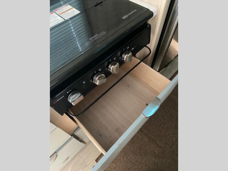 Pack your bags and load up the kids to head out on a great camping adventure as a family! There is a front 54" x 74" full-size bed for you and a set of rear corner bunk beds for the kids, plus they can bring a friend to sleep on the 32" x 74" booth dinette. You can prepare meals for the whole group with the three burner cooktop and the 10.3 cu. ft. 12V refrigerator, plus you can pop a bag of popcorn in the microwave for movie night with the Smart TV. And a private toilet and 24" x 36" shower next to the bunks and offers a great place to get ready for the day or bedtime.