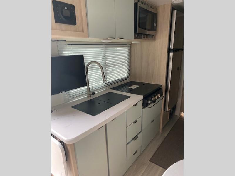 Start out on your boundless journey in one of these Winnebago Industries Towables Micro Minnie travel trailers! Towing is made simple with the 7' width to keep your Micro Minnie in your rear-view mirror. They don't lack in features either although they are compact in size. The spacious galley including a sink, refrigerator, a cooktop, and even a convection microwave oven allows you to cook without compromise. You will not only enjoy the entertainment found indoors with a Smart TV, a JBL premium sound system and Aura Cube high performance mechless media center, but outdoors you will also enjoy the JBL premium speakers and a power awning with LED lighting. Each model also comes with flexible exterior storage to make packing quick and easy, a 200-watt solar panel for off-grid camping, and Dexter TORFLEX torsion stub axles for smooth towing!
