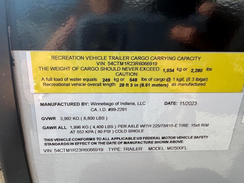 Used 2024 Winnebago Industries Towables Minnie 2500FL Travel Trailer