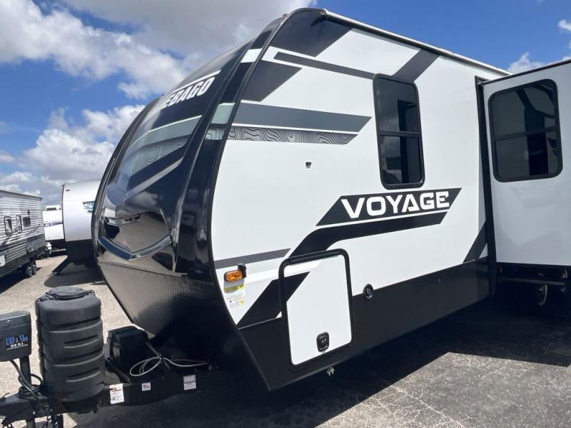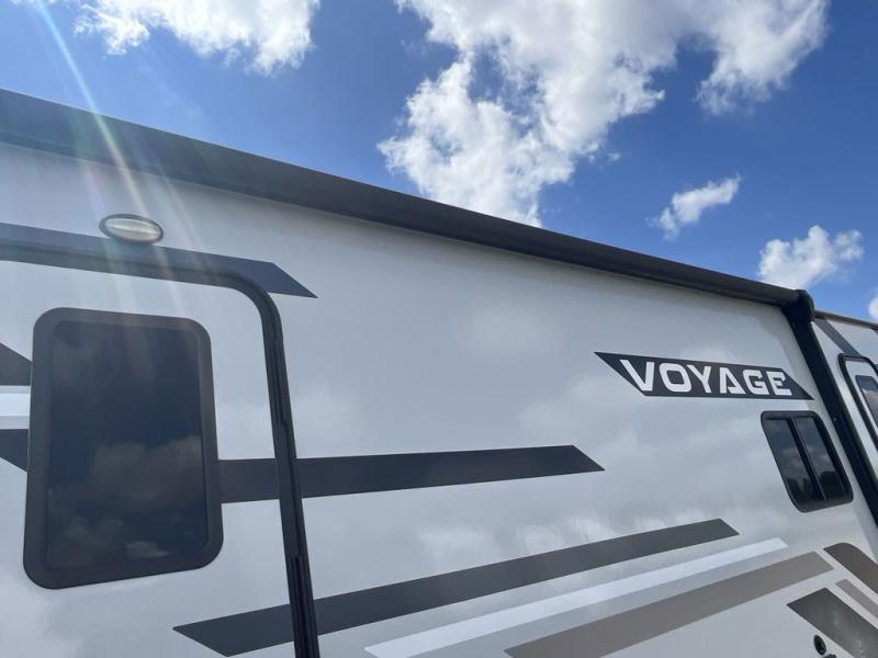 Each Voyage travel trailer by Winnebago Industries Towables includes a 200-watt solar panel with a 30 amp-charge controller and resettable breaker so you can camp off-grid. Also included is a heated and enclosed underbelly with radiant foil insulation for four seasons of travel, 2" thick FILON® MAX fiberglass sidewalls and a painted gel coat front cap with integrated LED lighting, a walk-on roof, plus power stabilizers for easy setup and stability. The interior offers many comforts of home, large windows, LED ceiling lights, ductless flooring throughout, and full kitchen amenities. No voyage is better than the one taken in a Voyage travel trailer! Come choose your model today!