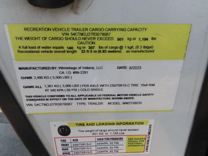 Used 2024 Winnebago Micro Minnie 2108DS Travel Trailer