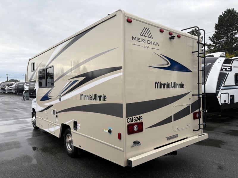 Choose your adventure with one of these Winnebago Minnie Winnie Class C gas motorhomes! The 7.3L V8 premium engine and Ford E350 or E450 chassis makes light work of long hills. Their superior craftsmanship that was designed and built for you is shown through the Smart Driver Assist technology that includes adaptive cruise control, lane departure warning, forward collision warning, and more. With flexible seating/sleeping options and a full galley with Corian solid surface countertops, everyone will stay well rested and fed. You can store all of your traveling necessities between the overhead cabinets throughout the inside and the exterior lighted large trunk storage compartment for your outdoor gear. Come find the model perfect for you today!