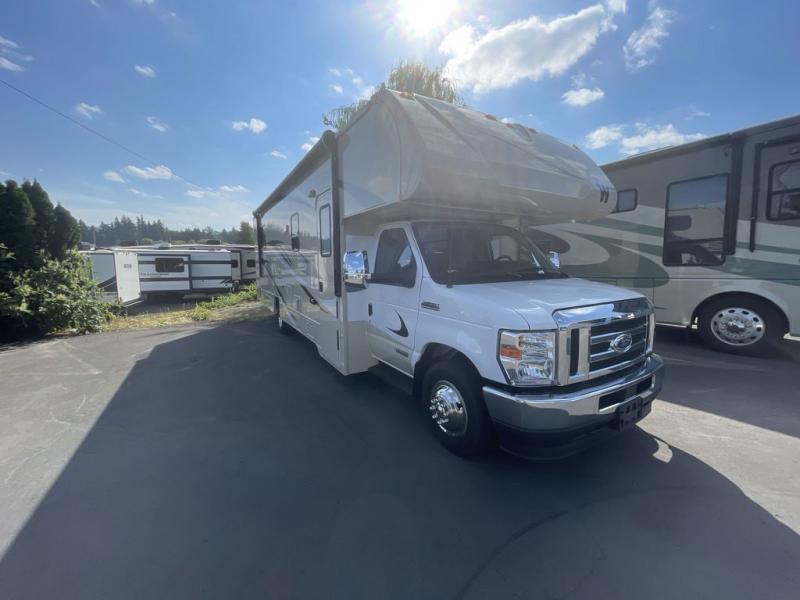 Choose your adventure with one of these Winnebago Minnie Winnie Class C gas motorhomes! The 7.3L V8 premium engine and Ford E350 or E450 chassis makes light work of long hills. Their superior craftsmanship that was designed and built for you is shown through the Smart Driver Assist technology that includes adaptive cruise control, lane departure warning, forward collision warning, and more. With flexible seating/sleeping options and a full galley with Corian solid surface countertops, everyone will stay well rested and fed. You can store all of your traveling necessities between the overhead cabinets throughout the inside and the exterior lighted large trunk storage compartment for your outdoor gear. Come find the model perfect for you today!