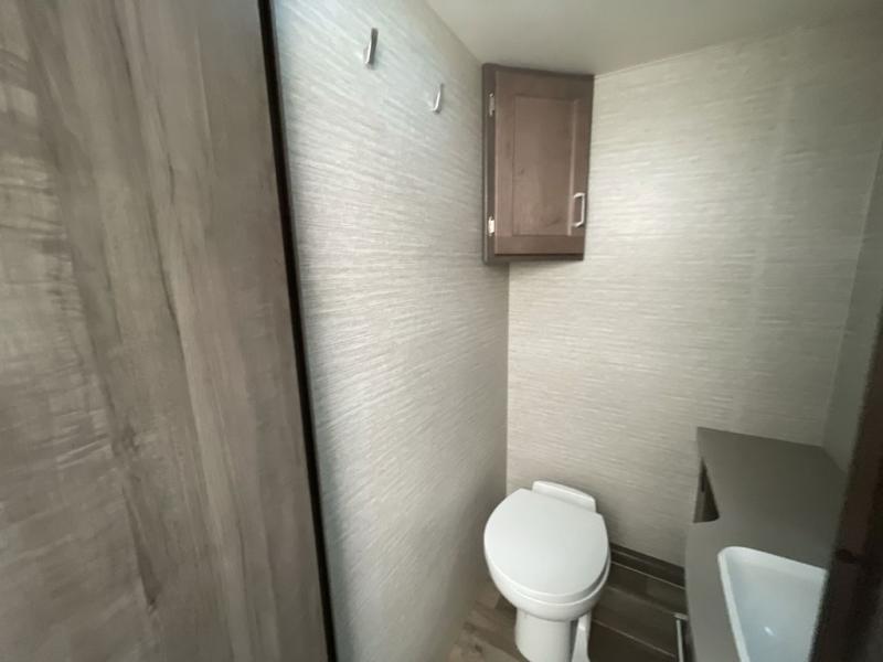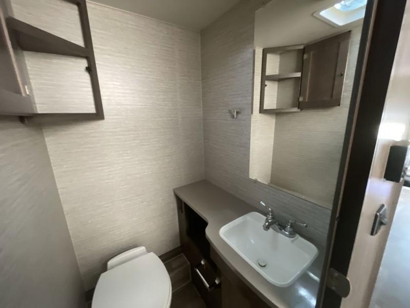 You won't want to travel any other way once you step inside this motorhome! It features a rear private bedroom with a 60" x 80" queen bed that has wardrobes on either side and a TV location for entertainment. The separated bathroom makes it easy for one person to freshen up in the 26" x 30" shower with a skylight while another uses the private toilet and sink. A sliding door closes off the bathroom from the kitchen area which has a three burner range with glass cover and oven and a two way large double door 8 cu. ft. refrigerator/freezer with woodgrain paneling to store your perishables. Enjoy your meals at the 45" x 82" U-shaped dinette then relax on the 40" x 60" sofa bed which can be switched out for either the optional theater seating or optional 58" x 74" TrueComfort sofa. You even have a 57" x 95" bunk over cab for sleeping or storage space!