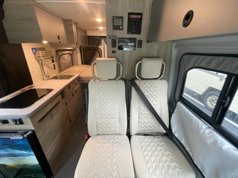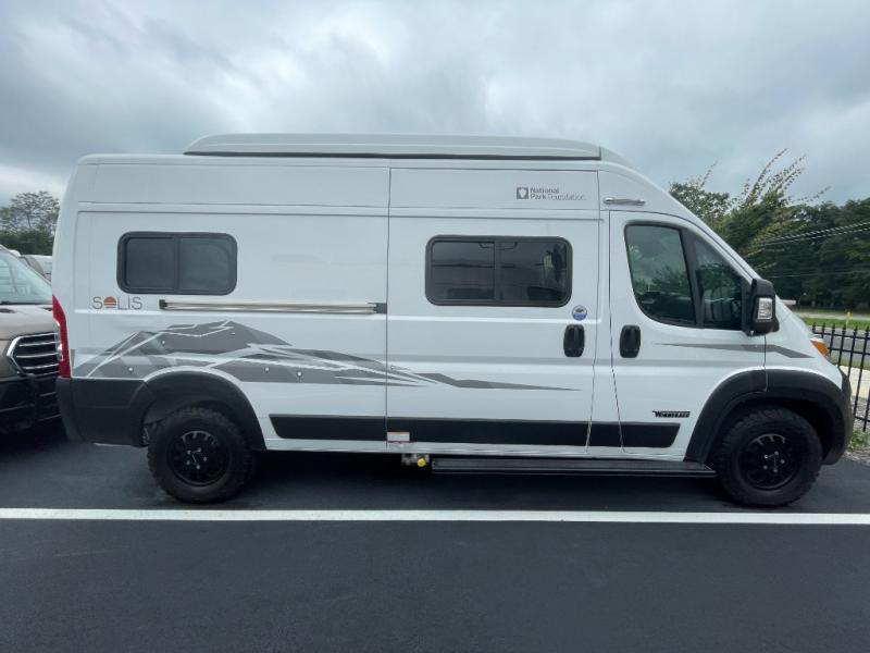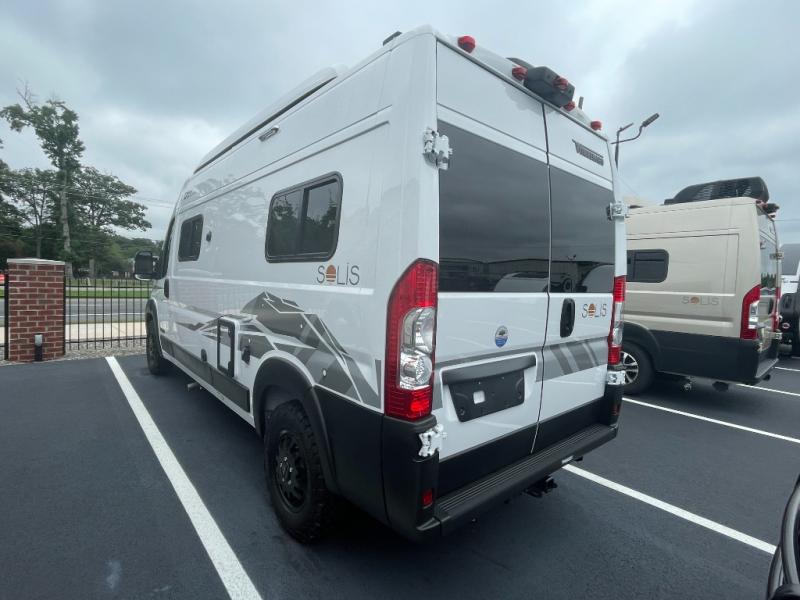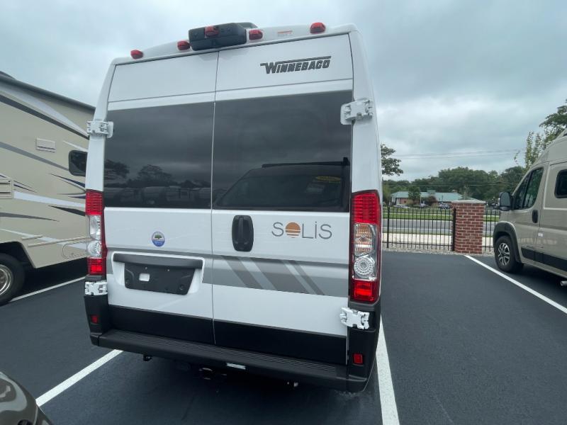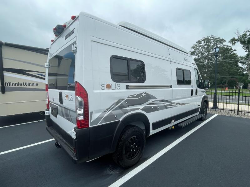 Each Solis Class B gas motorhome by Winnebago sits upon a fuel-efficient Ram ProMaster chassis with a 3.6L V6 engine to power your adventures. You will love the cab conveniences that make each trip enjoyable, like the radio/review monitor system touchscreen and the crosswind assist to keep you steady on the road. Some of the hassle-free amenities you will appreciate are the exterior wash station, the Eco-Hot water system, and the water center control panel located inside the right rear door. Head indoors to find heavy-duty vinyl flooring throughout, a laminate countertop and a stainless steel sink in the galley, plus tinted coach windows for added privacy. The Solis also features off-grid capabilities with its two deep-cycle Group 31 batteries and 220-watt flexible surface solar panel with a controller. Adventures awaits in the Solis Class B gas motorhome!