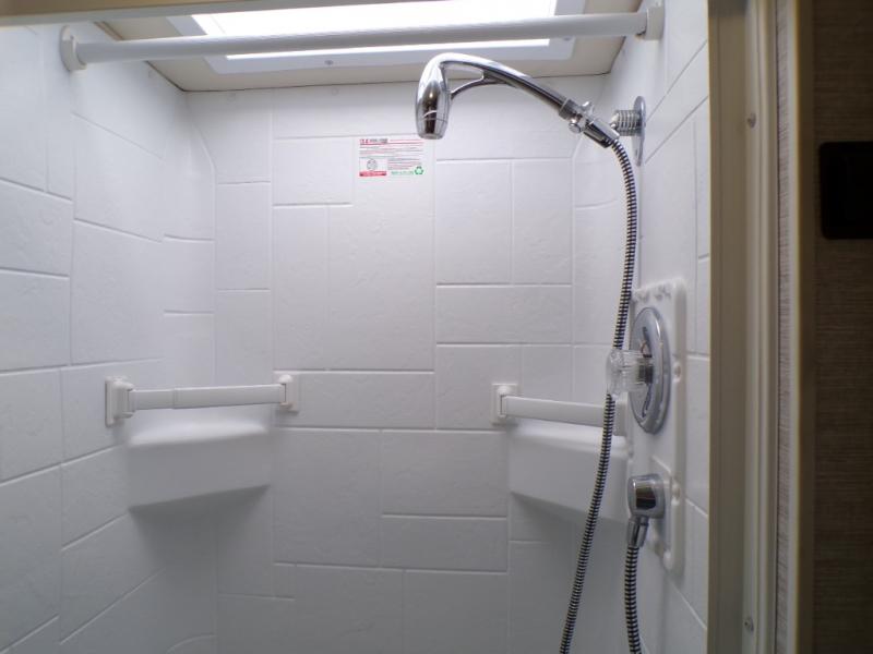 A couple or family will enjoy the look of the interior each time they take this View Class C diesel motorhome on the road. With the curved cabinets, the lighted soft-close galley drawers, and the sprung-cushion dinette and sofa seats, there will surely be a favorite feature for everyone. You will be able to easily set up the queen Murphy+ bed when it's time for bedtime while the kids sleep on the bunk above the cab or the U-shaped dinette. You might like to add the theater seating option with swivel tables if you don't need that extra sleeping space. Everyone can get cleaned up in the full rear bathroom that has a space-saving sliding door before making meals with full kitchen amenities including a convection microwave/oven.