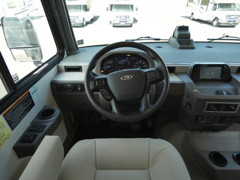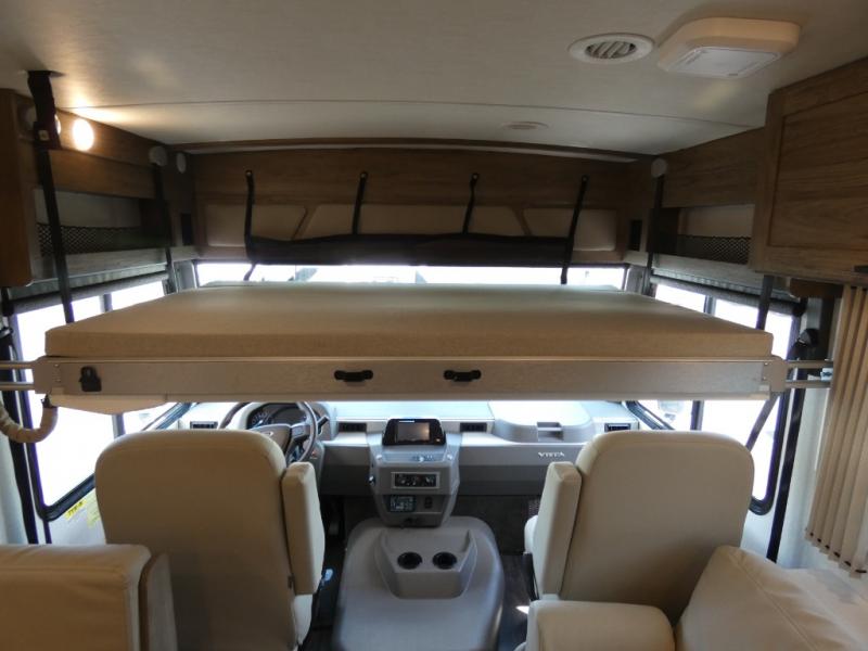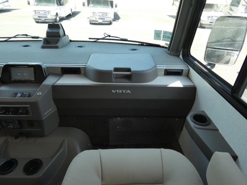 The Winnebago Vista Class A gas motorhome will expand your horizons and provide you a great traveling home on wheels! The Vista is powered by a 7.3L PFI V8 engine on a Ford F53 chassis with 5,000 lbs. of towing capacity which allows you to bring along one of your favorite toys. The adjustable swivel cab seats in front can slide and recline so you can be sure to have the perfect level of comfort in addition to entertainment with the 7" LCD color touch screen that is Sirius XM ready and Bluetooth compatible with Android Auto and Apple CarPlay. The powered blackout roller visor/shade on the front windshield provides extra privacy, and the passenger dash workstation with USB and 12-volt power port lets you get some work done while on the road.
