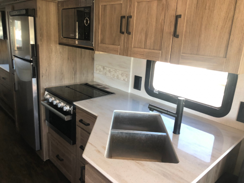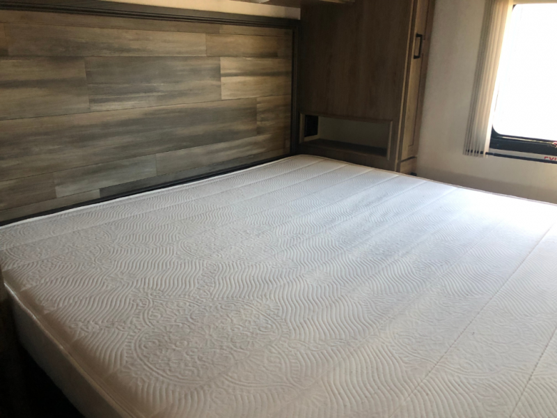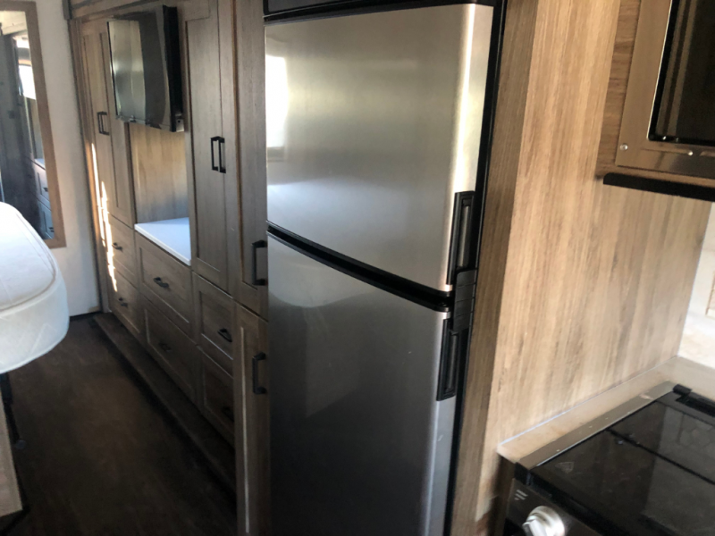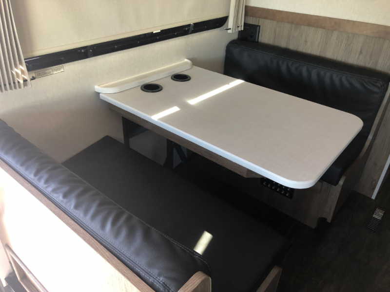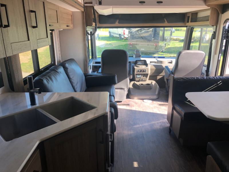 Head to your favorite destinations with this motorhome! You can travel with your spouse or bring an extra guest or two when you add the optional StudioLoft 50" x 80" powered bed above the cab. The 40" x 66" sofa bed can also transform into an extra sleeping space but if you don't need it then you can switch it out for the optional theater seating. Enjoy delicious home cooked meals while on the road with the three burner cooktop or head to the exterior kitchen to breathe in some fresh air while you cook. Eat your meals at the 42" x 70" dinette with Hi-Lo table and freshen up each morning in the full bathroom featuring a 26" x 38" shower. The rear private bedroom has a 72" x 75" king bed to lay your head on at night and wardrobes on either side of a storage area with a location for an optional TV to be added!