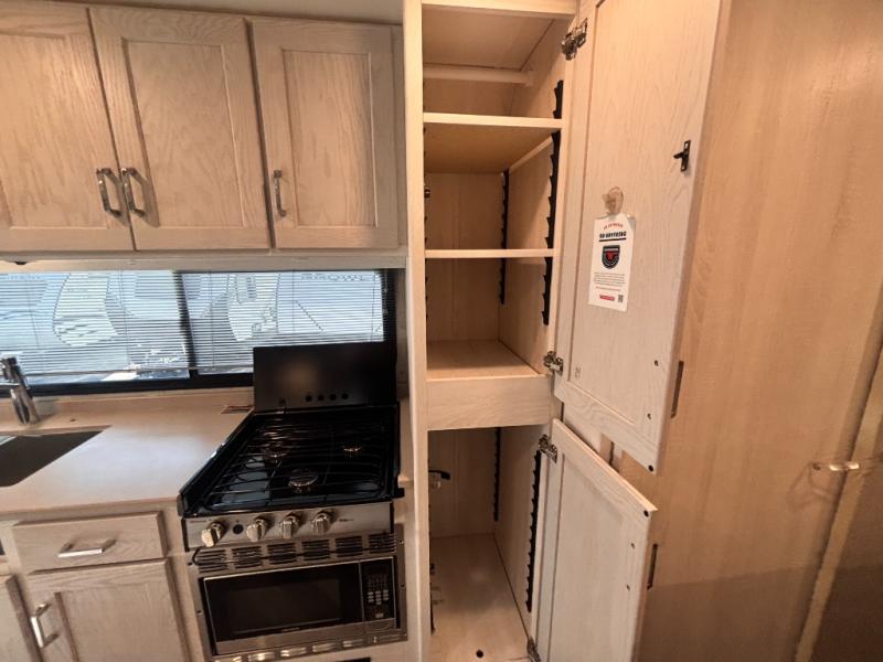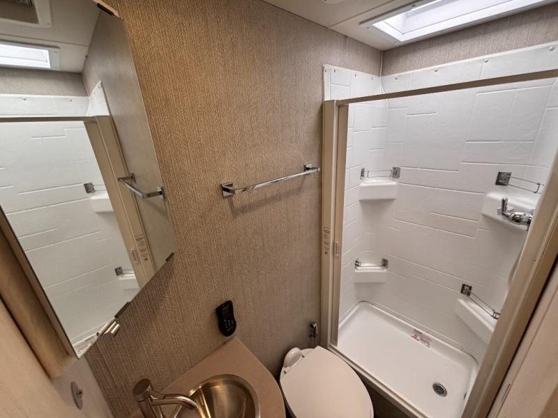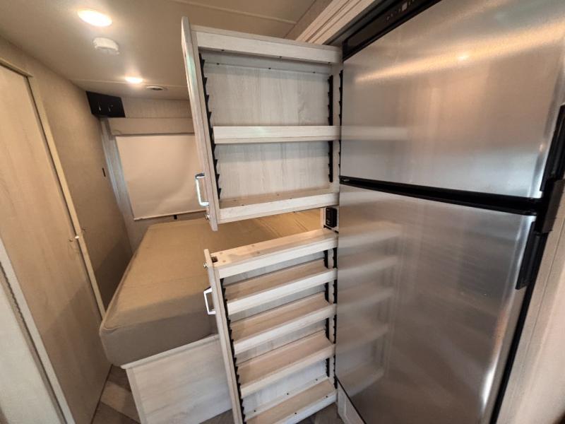 Spacious living is what this Vita Class C diesel is all about. This motorhome features sleeping space for five or six depending on your size with a rear queen bed, a dream dinette that is 40" x 70" and can be transformed into sleeping space if you like, plus an over cab bunk at 49" x 87" that could sleep two children or an adult. You can easily cook all of your meals with a three burner cooktop, and convection microwave oven below. A refrigerator and pantry are located within the full-wall slide next to the dinette for all of your food storage needs. You can choose the optional theater seating with a pedestal table for two if you don't need as much space for dining or added sleeping. The rear corner bath opposite the 60" x 75" queen bed is a convenience that you will appreciate as you travel featuring a 24" x 32" shower, toilet, and corner sink with overhead storage. The bath features a sliding bi-fold door for privacy. This unit also features plenty of storage both inside and out with overhead cabinets, nightstands, wardrobe storage for your clothing, and an exterior storage door along the slide at the back of the refrigerator and pantry that is easily accessible, plus so much more!