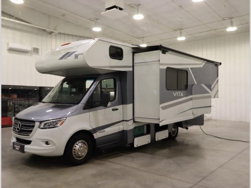 This is a great fuel efficient Mercedes Benz with a full all slideout floorplan, and back with certified preowned warranty, a 2024 Winnebago Vita 24P! It comes backed not only with a clean vehicle history report, but the confidence of our certified preowned RV collection!