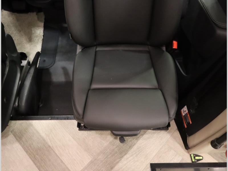 8. Front seats that rotate to become integral lounge chairs with seat height boosters for a more residential feel. Also include armrests, adjustable lumbar support, headrests, and reclines, swivel and slide