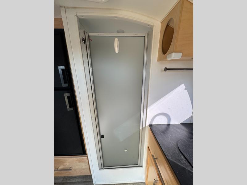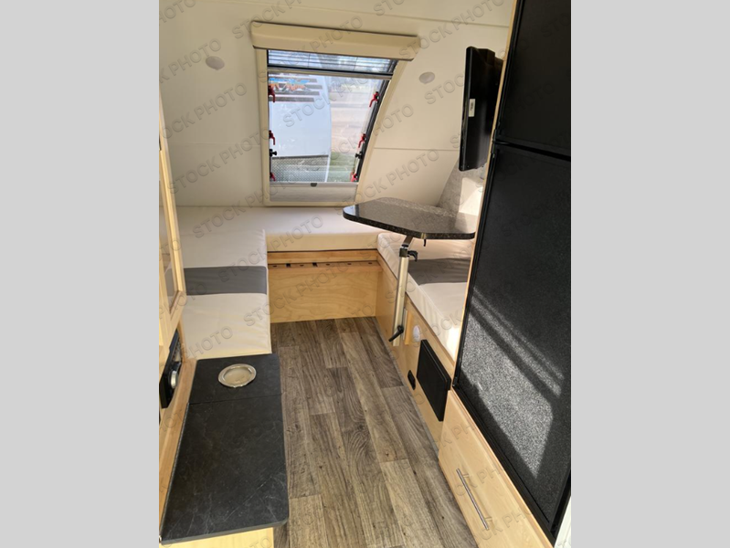 This Little Guy teardrop trailer is designed to deliver the maximum amount of fun in a compact package! It features the same layout as the standard Mini MAX model, but includes a larger 6 cu. ft. refrigerator, a pass-through storage, and a shower with a sink! This trailer can easily be towed by a small SUV or well-equipped crossover, and it is a tough trailer that offers 15" premium tires, Azdel composite sidewalls, insulated dual-pane windows, an exterior entertainment center, and a friction-hinge entry door. Despite its compact size, this trailer still offers you a spacious interior living space with its 6' 1" interior height. You can even tack on an optional rear vertical stargazer window which allows you to bring more of the outdoors inside. This model has a dry weight ranging from 2,474-2,502 lbs. and a GVWR ranging from 3,750-3,850 lbs.