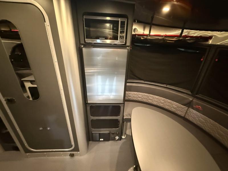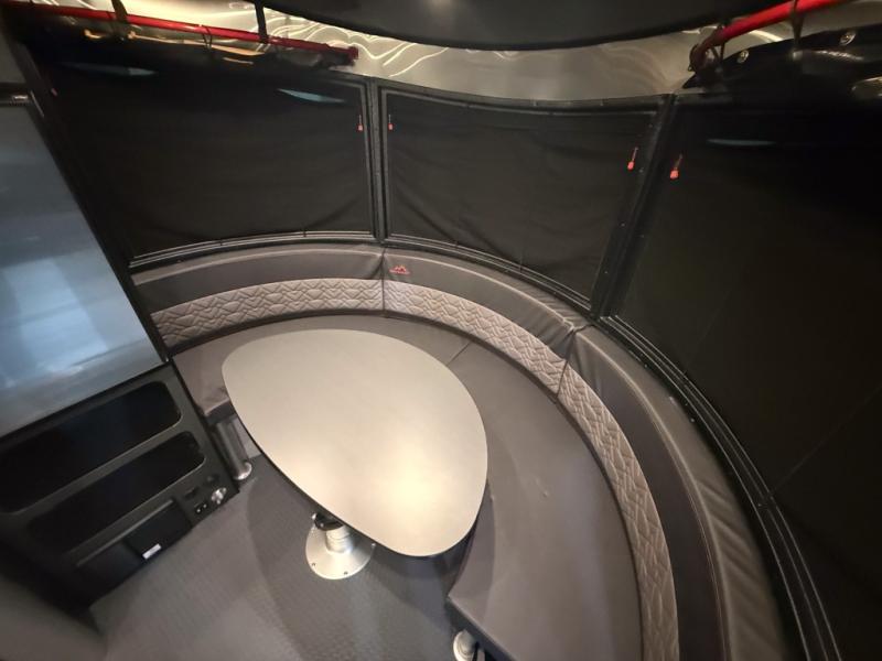 This travel trailer includes the Basecamp X Package that comes with stainless steel front stone guard protection, Goodyear off-road tires, and a 3" lift kit for added ground clearance. You can easily sleep everyone when using both the rear benches and the front U-shaped dinette. The benches provide split sleeping or a half-bed on one side and a full bed that spans the back of the trailer into an 82" x 78" area. There is storage under the cushions for the two removable tables that allow you to dine, work and relax with a place for your cellphones and such. The wet bath comes complete with a shower, sink and toilet so you can rinse off from a day outdoors, the galley kitchen gives the cook a place to make warm meals and store drinks and leftovers. This Basecamp also offers front panoramic windows, a steel entry step, a full-size spare tire, and a rear hatch allowing you to take your snowboards, skis, and paddle boards.