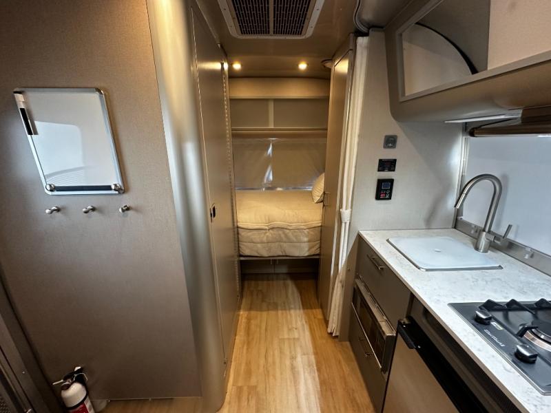 The Caravel 16RB captures everything that makes Airstream iconic. From its aerodynamic aluminum shell to its handcrafted interior, this model is built to turn every trip into a memorable journey. The compact 16-foot floorplan maximizes space with clever design, offering a cozy rear bedroom, a fully equipped kitchen, and a surprisingly spacious wet bath. Every inch reflects Airstream’s attention to detail—sleek cabinetry, stainless-steel appliances, panoramic front windows, and LED lighting make this trailer feel open and modern.