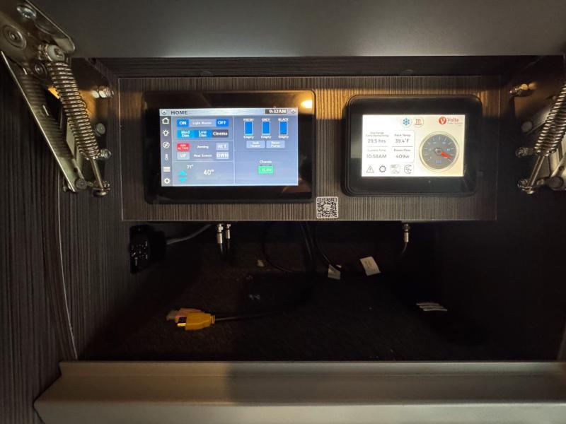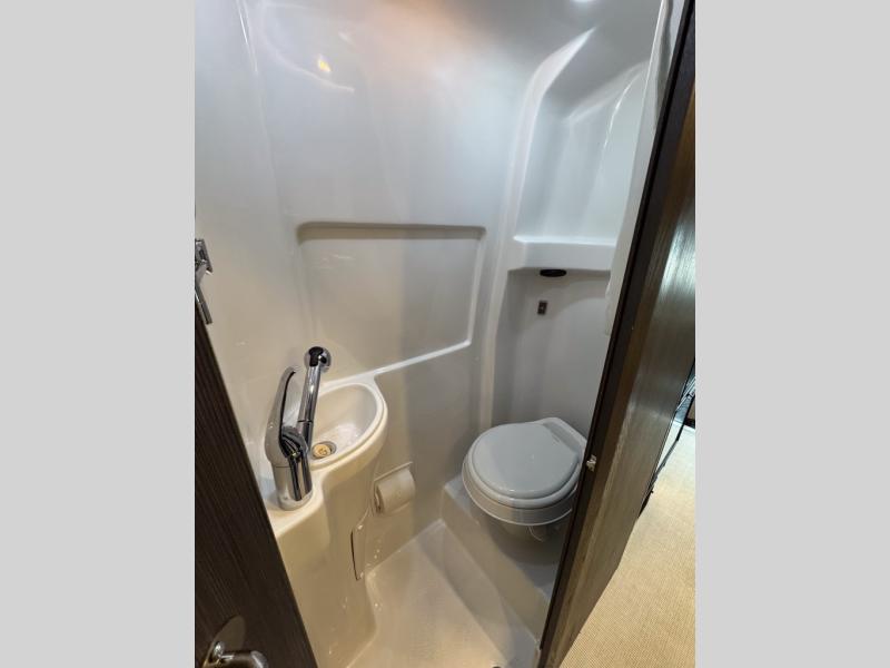 Get ready to drive and stay in comfort and luxury in this motorhome with everything you need and everything you didn't even know you wanted! The heated driver and passenger seats swivel to face the interior living space allowing you to utilize the Corian countertop with an LED TV above to place your beverages, and the driver can use this as a desk to work from here once stopped. Whip up a meal using the galley kitchen featuring a two-burner gas stove, and a large stainless steel sink and faucet, plus extra counter space for food prep. There is a 1.2 cu. ft. drawer microwave and deep drawers for storage, plus a slide-out pantry and a refrigerator with a freezer across from the sink. The power sofa in the rear can be fully flat with a push of a button so two can sleep or rest. And there is storage throughout for your hanging clothes, towels, luggage, dishes and more.