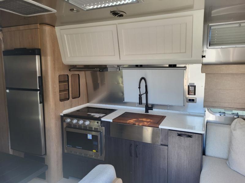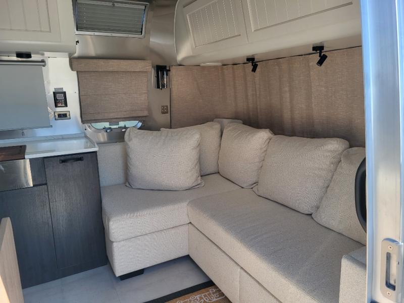 The timeless, beautiful, and comfortable Airstream Pottery Barn Special Edition travel trailer allows you to stay connected while always feeling at home! These trailers feel like an extension of your own home with their elegant décor, and they provide a sanctuary that you can retreat to when you need to recharge surrounded by nature. The luxurious window coverings are made from Pottery Barn's best-selling Emery Linen Curtain Collection, and there is an airline-style table hidden in the sofa's armrest. The door-mounted chalkboard allows you to leave personalized messages for the group, and the built-in spice rack and knife block let you keep everything close at hand while you cook. Plus, the bedroom has Pottery Barn Belgian Flax Linen bedding for extreme comfort. Some of the excellent exterior features include a rearview monitoring system, power awning, a low-pressure gas grill connection, Quietstream climate control, power stabilizer jacks, a 300W solar package with a solar controller, and front stone guards.
