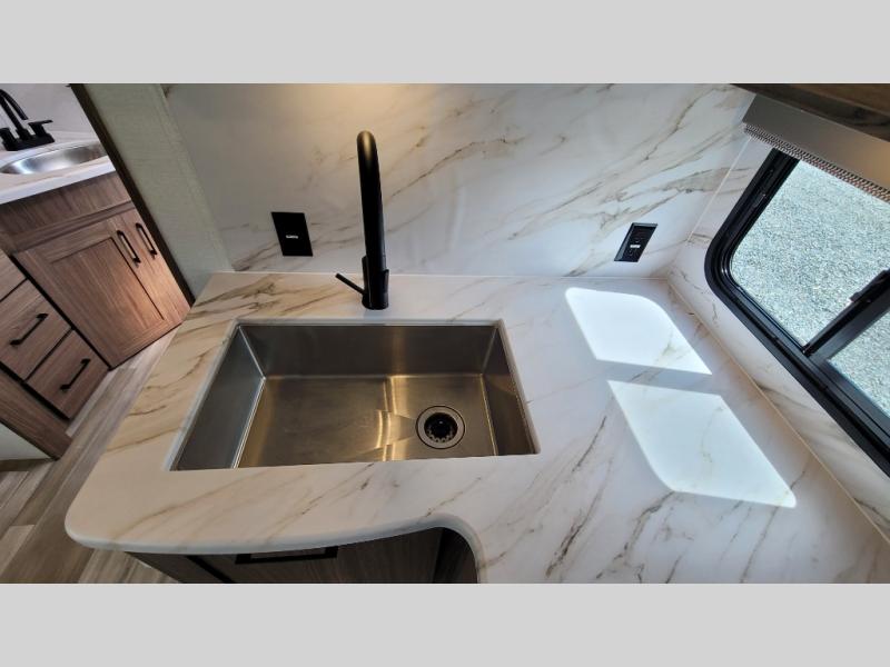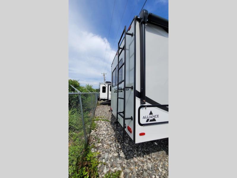 Form and function works together with every one of these Alliance RV Delta travel trailers! They are built with a walk-on roof with a seamless PVC roof covering, Mylar reinforced exterior seals, and a heated and enclosed underbelly to protect your unit in all seasons. The commercial grade vinyl flooring will be easy to clean and the oversized atrium windows throughout let in plenty of natural sunlight. With 62 cu. ft. of drop frame pass-through storage, you can bring along all of your essential camping gear plus it has USB charging for more convenience. There are many at home interior conveniences including a Bluetooth speaker, USB charging throughout, and even a pull-out kitchen trash can. Come find your favorite model today!