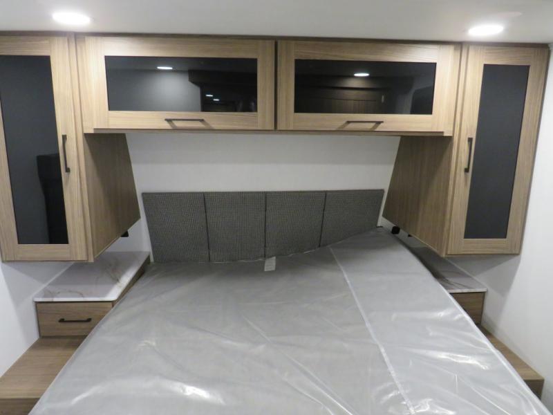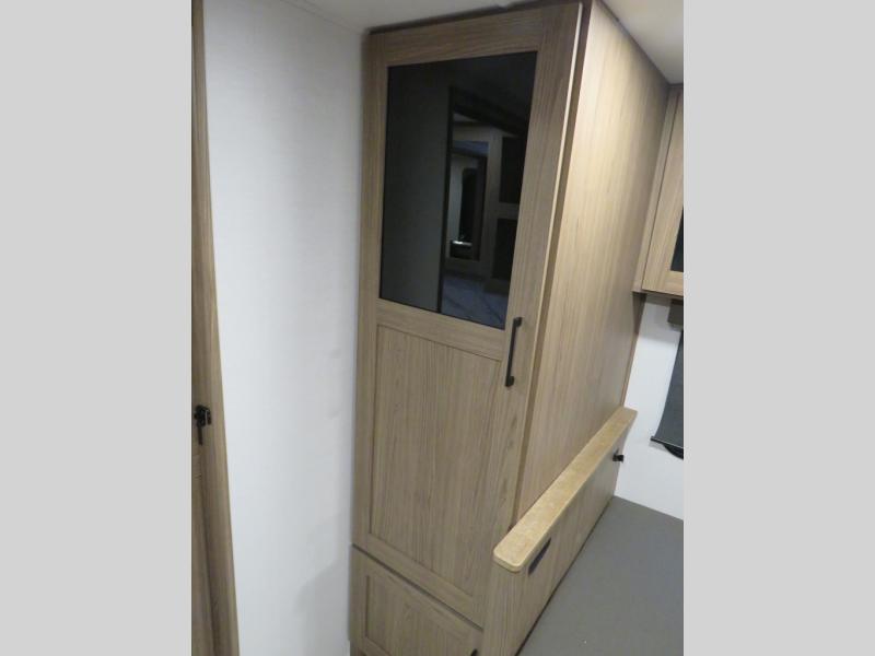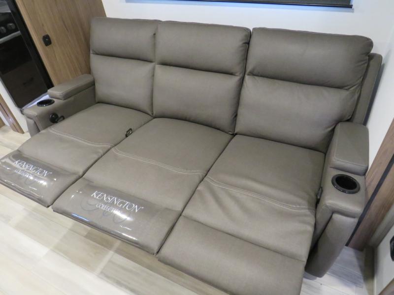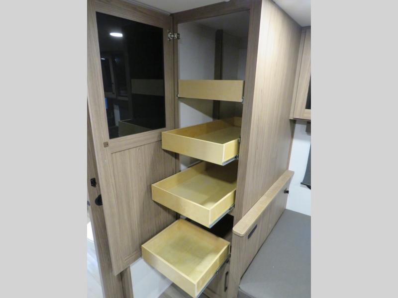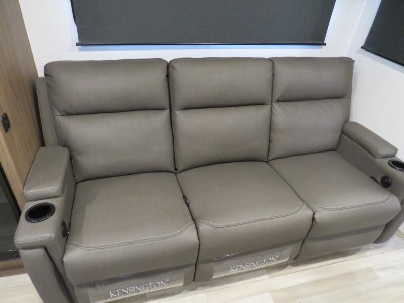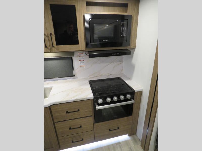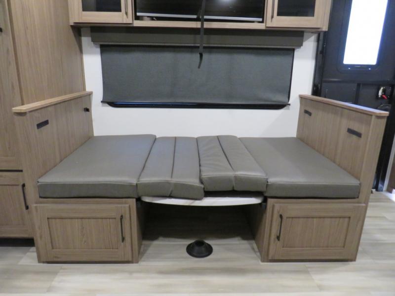 You'll love camping in this rear kitchen travel trailer with generous counter space and overhead storage for spices, dishes, and more. You can dine each day at the booth dinette or relax on the sofa slide out, which will provide more floor space. The spacious walk-thru bath includes a 30" x 36" shower, toilet, and vanity so you can clean up each day. Head to the front master bedroom where you can sleep soundly on the walk-around queen bed with dual nightstands and wardrobes. The second entry door is also found in this room so you can slip out for an early morning run!